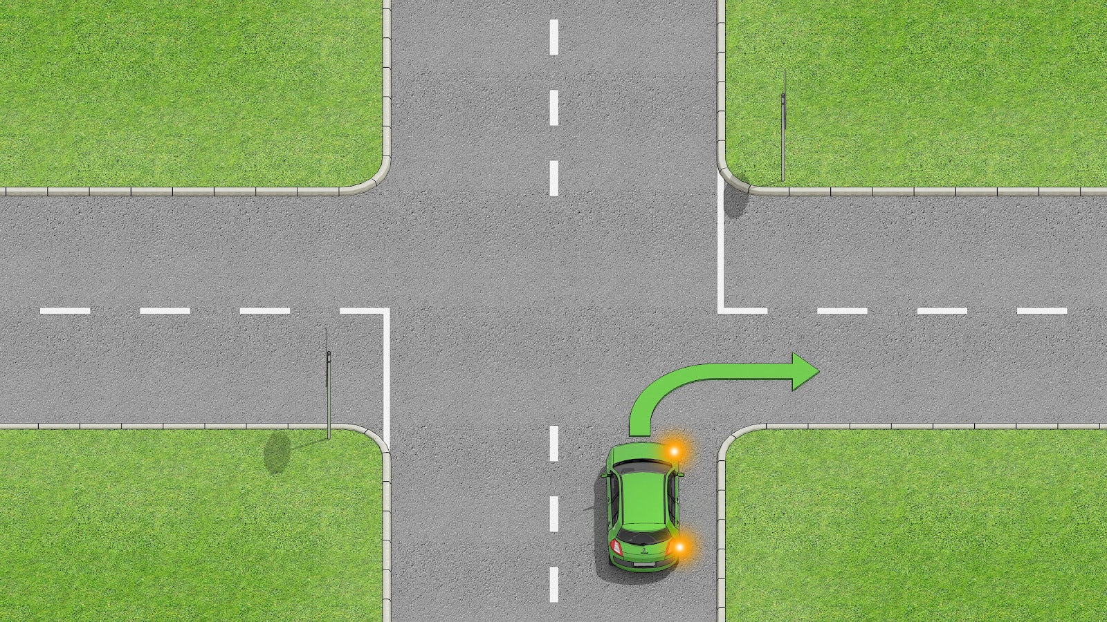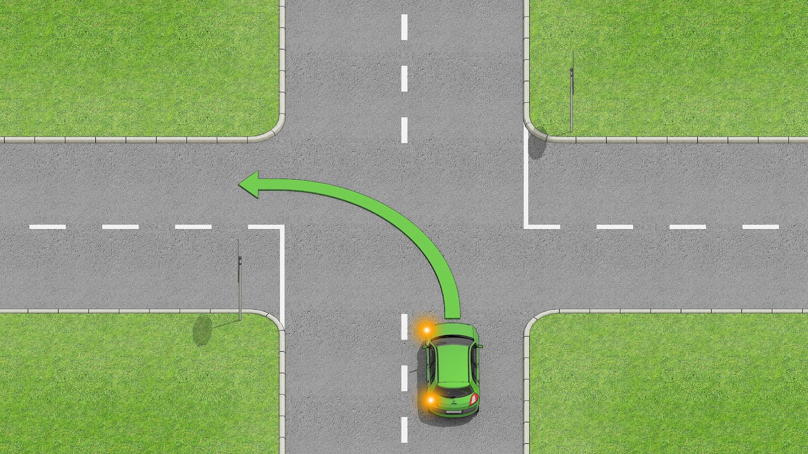 - Ne coupez pas le centre de l'intersection car cela pourrait entraîner une collision avec les véhicules venant en sens inverse.