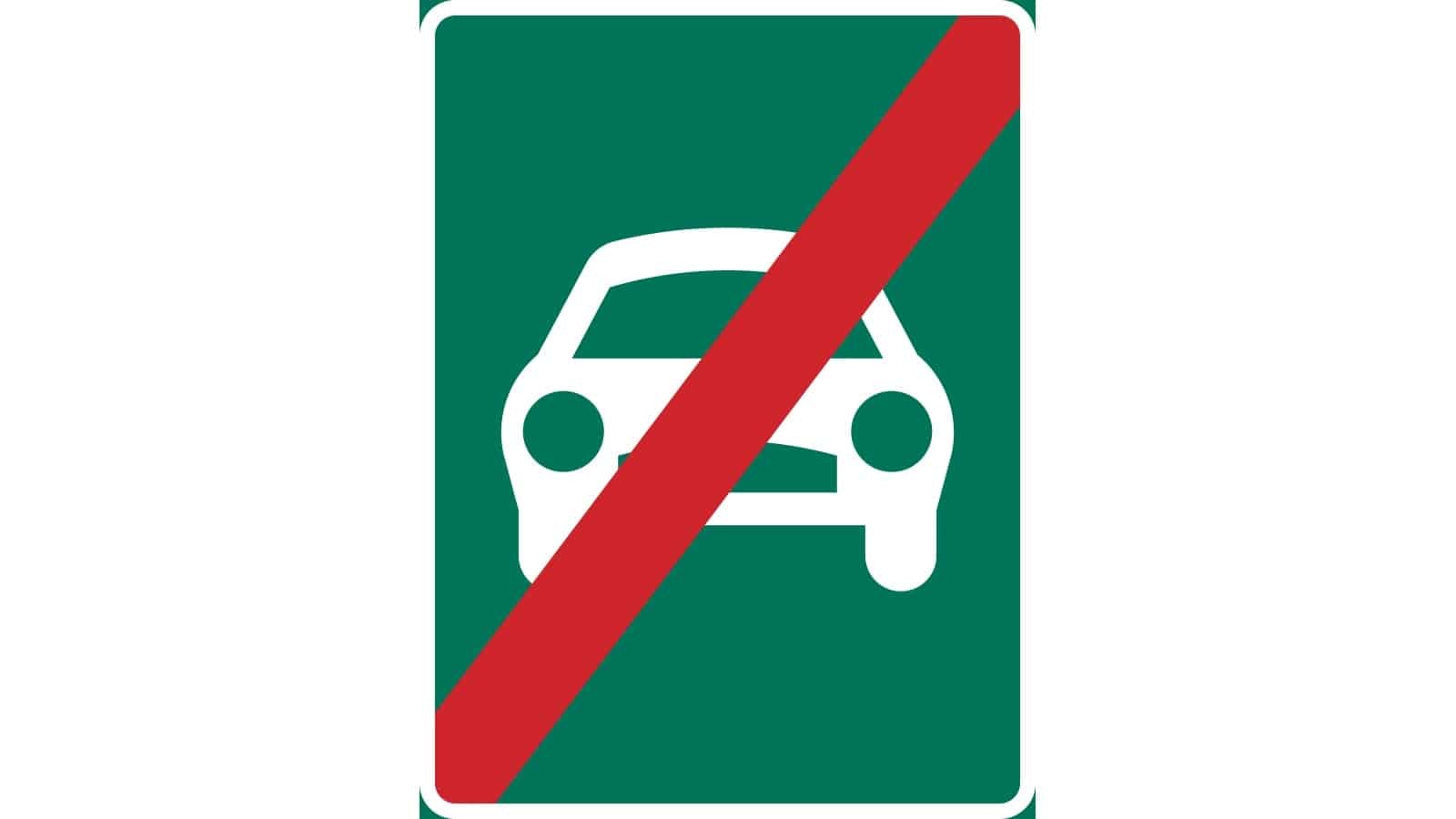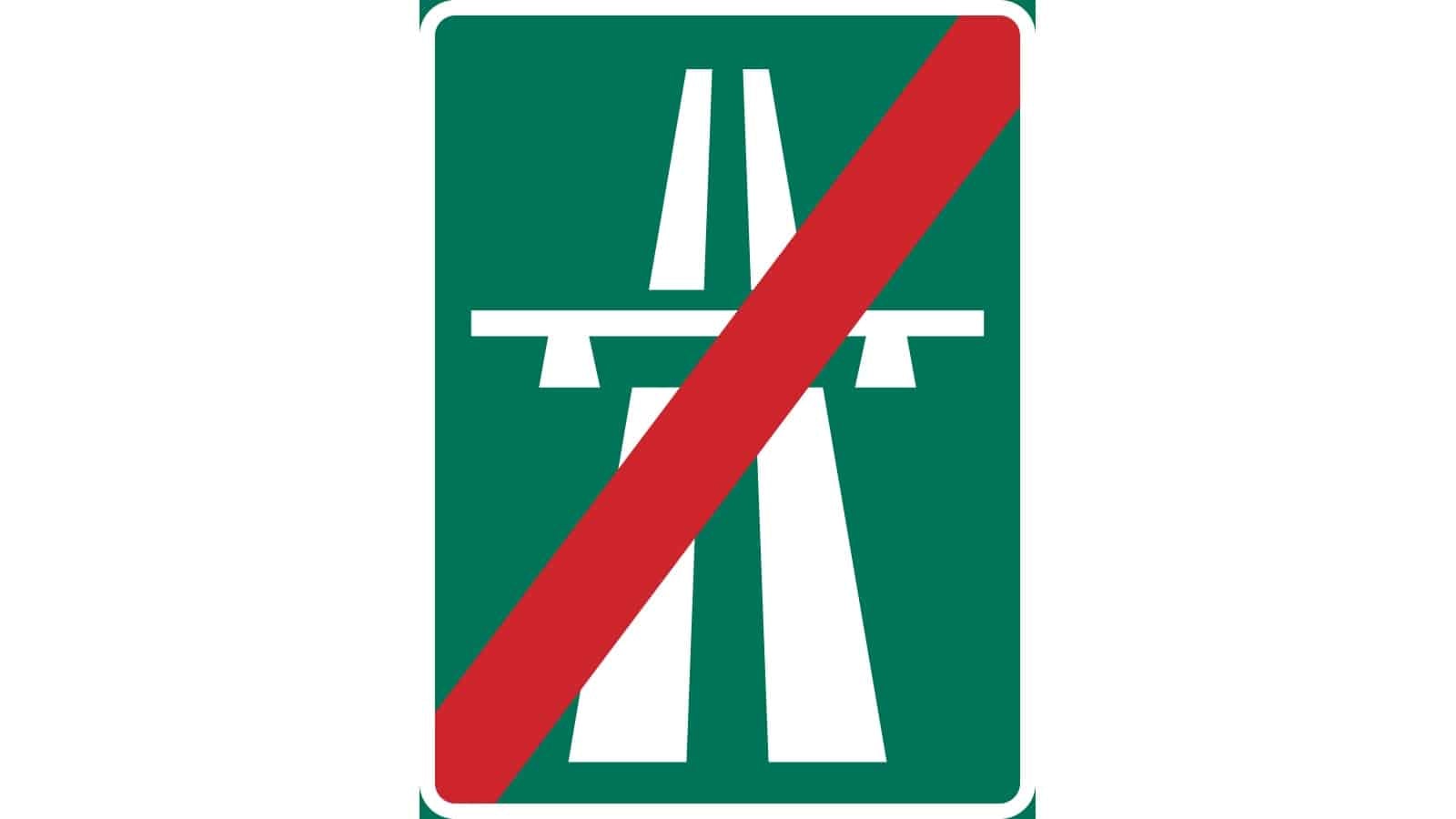 Motorväg upphör. Denna skylt anger att motorvägen du kör på kommer att upphöra inom kort.