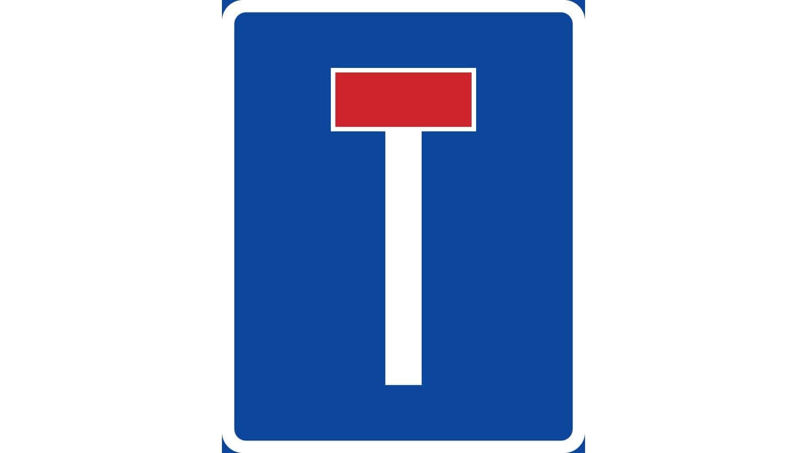 Återvändsgränd. Denna skylt informerar om att du närmar dig en återvändsgränd.