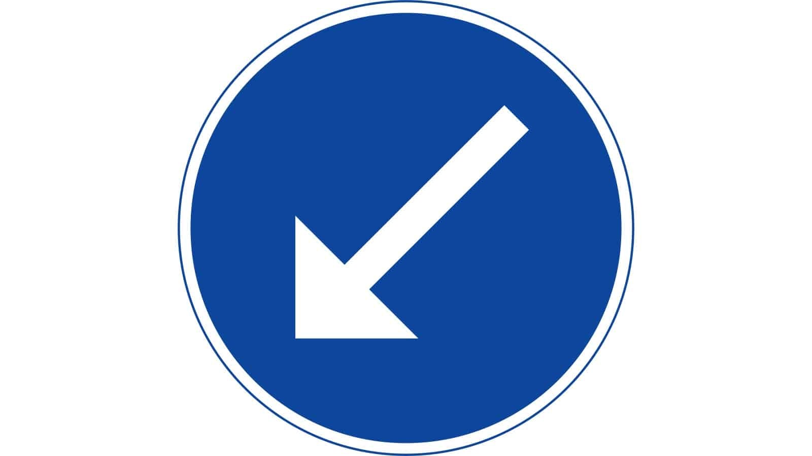 Håll till vänster. Detta påbudsmärke innebär att du måste hålla till vänster.