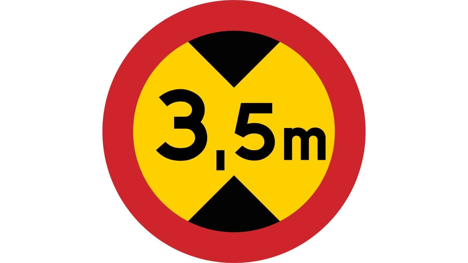 Förbud mot fordonshöjd. Skylten anger den maximala höjden ett fordon får ha. Är fordonet högre får det inte passera skylten. Den brukar finnas i samband med tunnlar eller vissa broar.