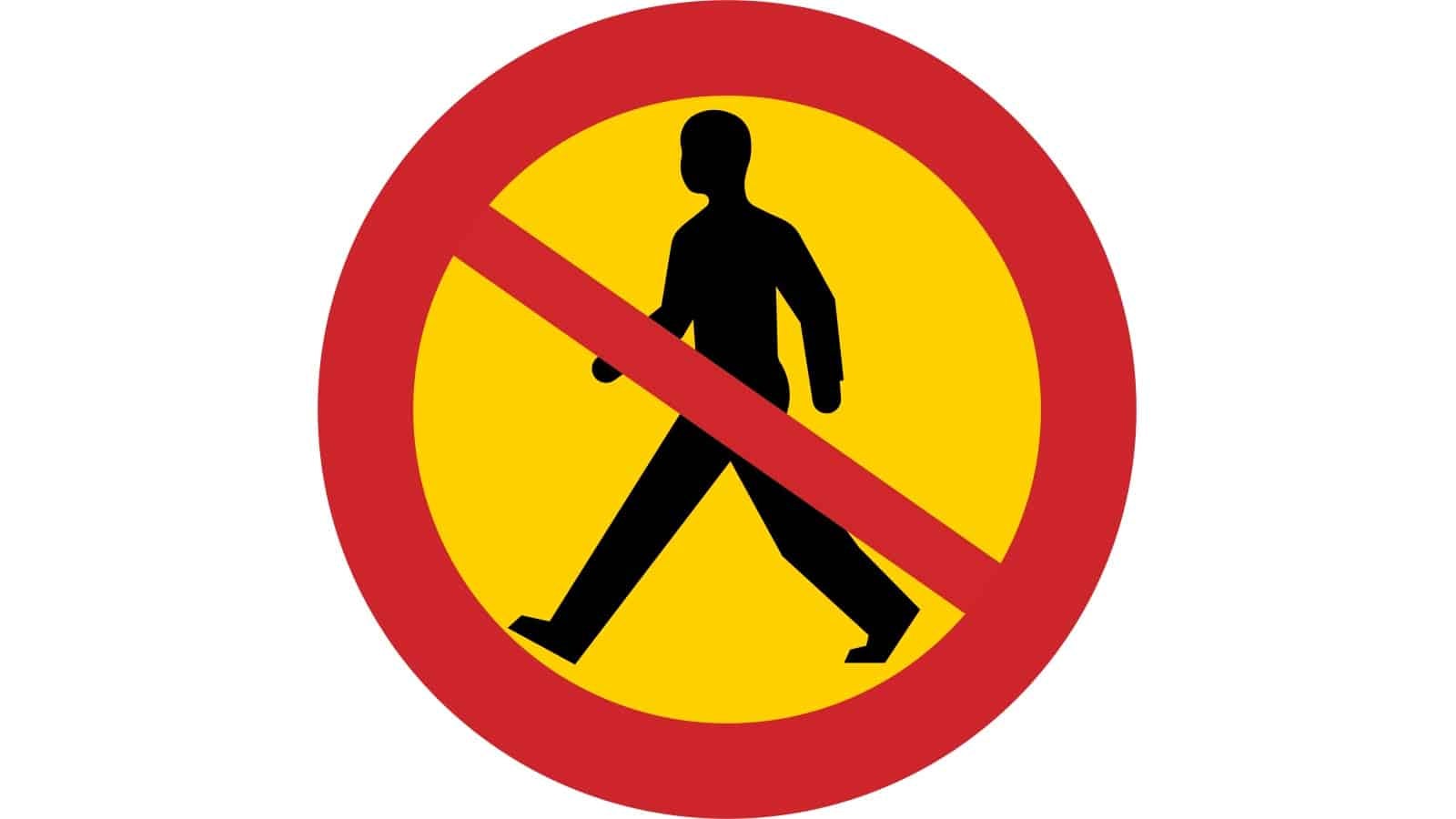 Trafikskylten anger att det är förbud mot gångtrafik.