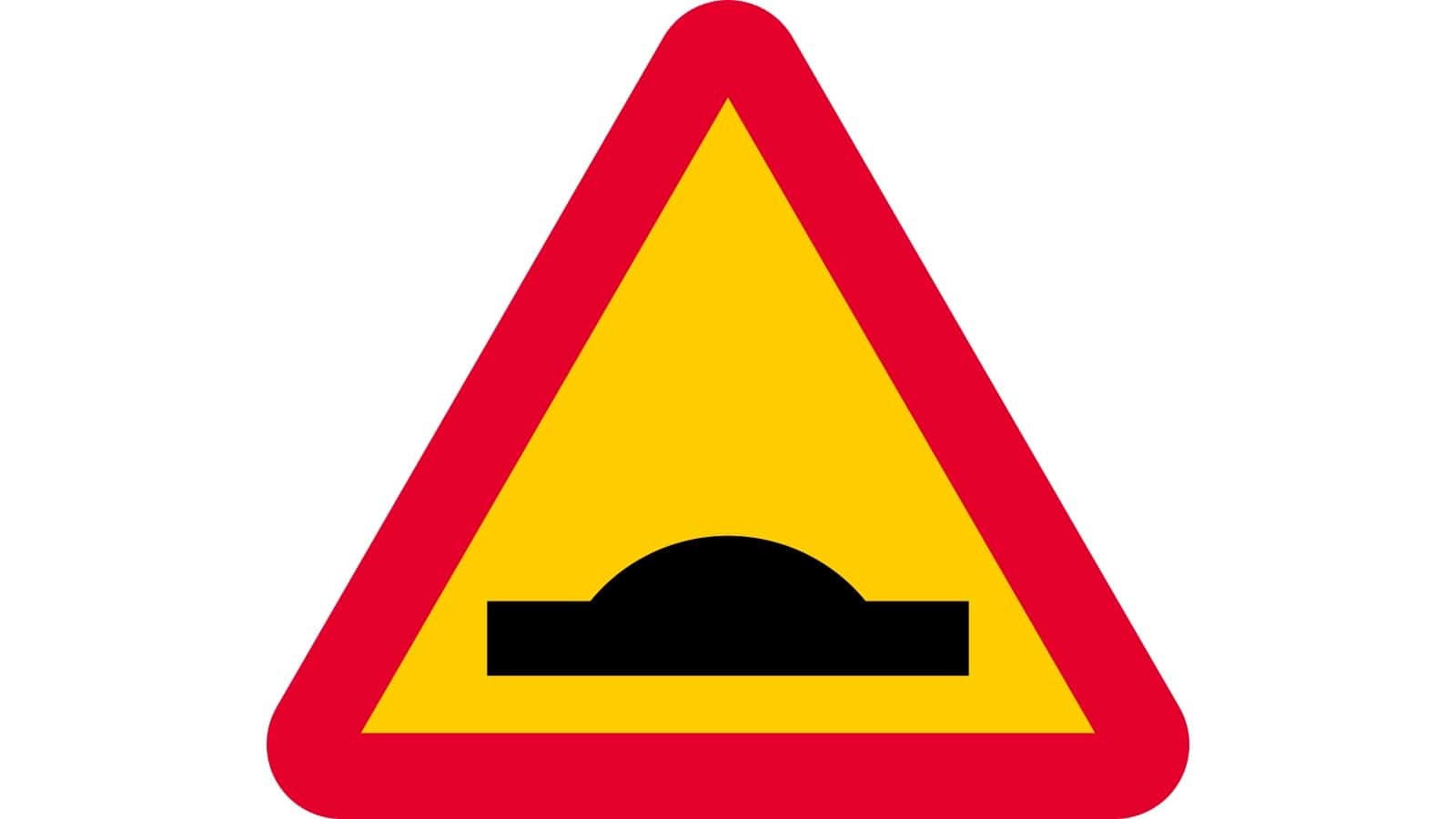 Varning för farthinder. Denna skylt varnar för att du närmar dig ett eller flera farthinder. Sänk hastigheten och var uppmärksam. Det finns ofta en särskild anledning att det förekommer farthinder, ex. lekande barn eller skola.