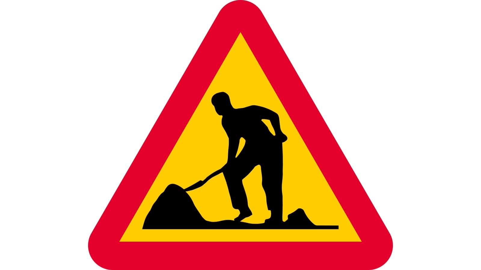 Varning för vägarbete. Denna skylt varnar för ett vägarbete. Sänk hastigheten och kör försiktigt. Visa alltid hänsyn mot vägarbetare och försök att hålla avstånd till dem. Den vanligaste olyckstypen i samband med vägarbete är med oskyddade trafikanter (exempelvis cyklister, fotgängare eller vägarbetare).