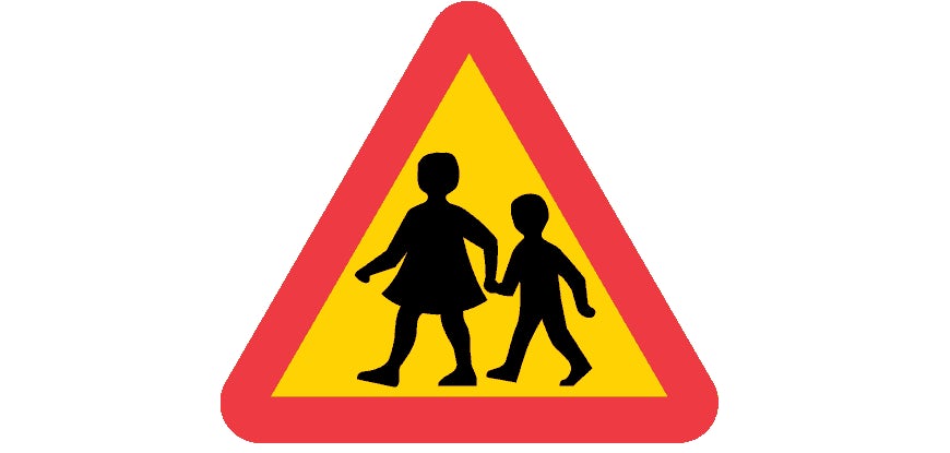 Varning för barn. Denna trafikskylt varnar för att barn ofta korsar eller befinner sig i området. Den är ofta uppsatt vid skolor och dagis, men ibland även i bostadsområden.