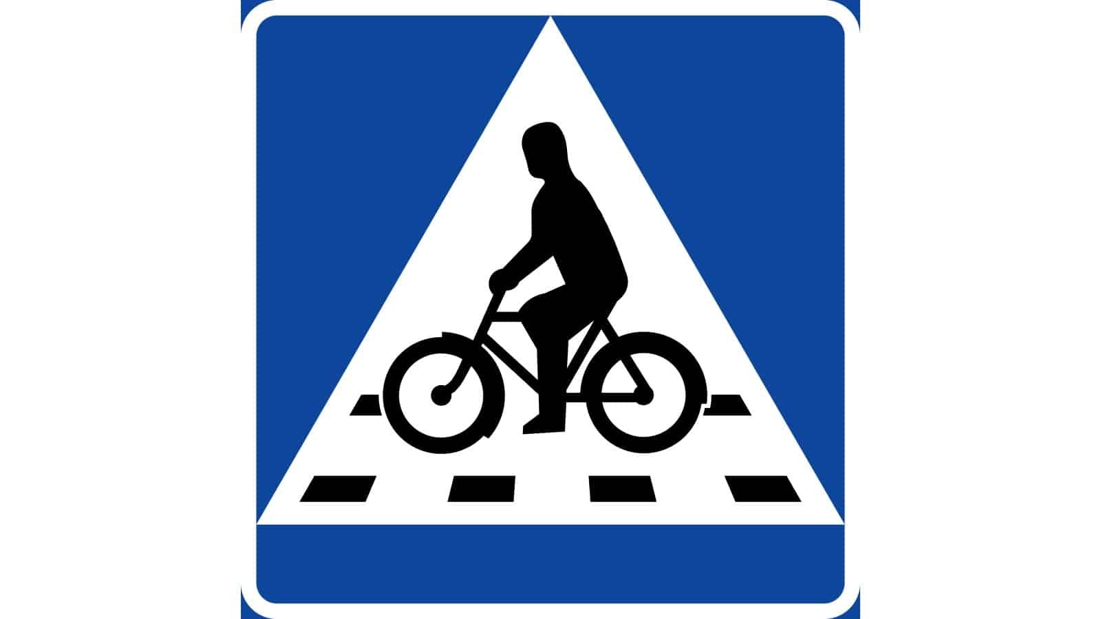 Cykelöverfart. Detta är en cykelöverfart. Om du närmar dig en cykelöverfart – sänk hastigheten och var beredd att lämna företräde åt cyklister som korsar cykelöverfarten.
