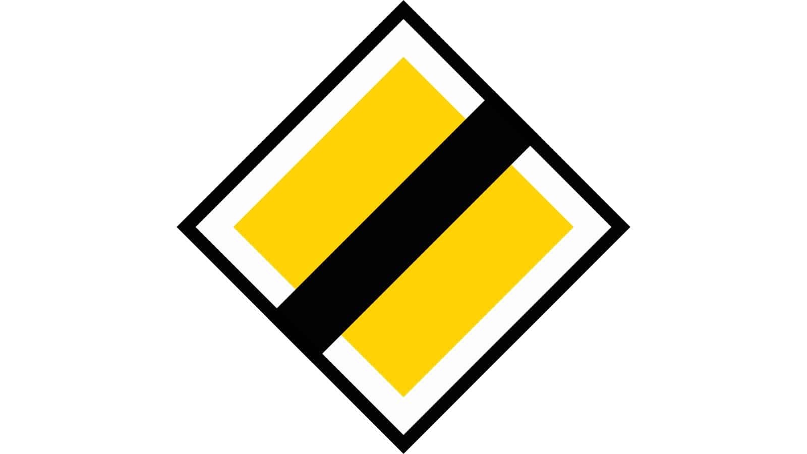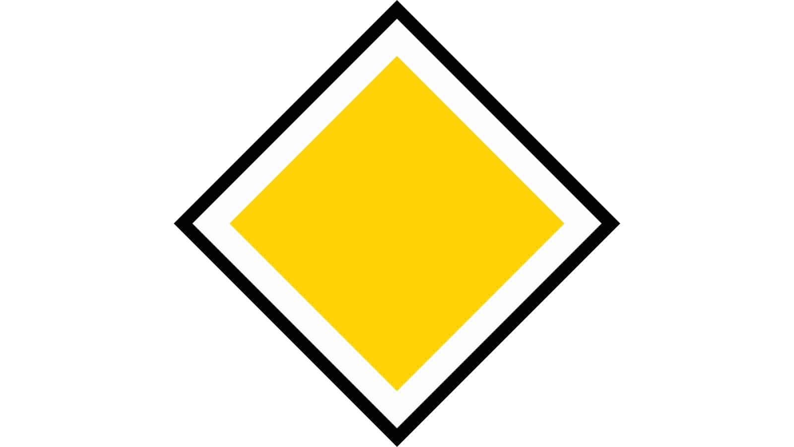Huvudled. Detta är en huvudledsskylt. Om du kör på en huvudled har du företräde och behöver inte väja åt bilar som vill köra in på huvudleden.