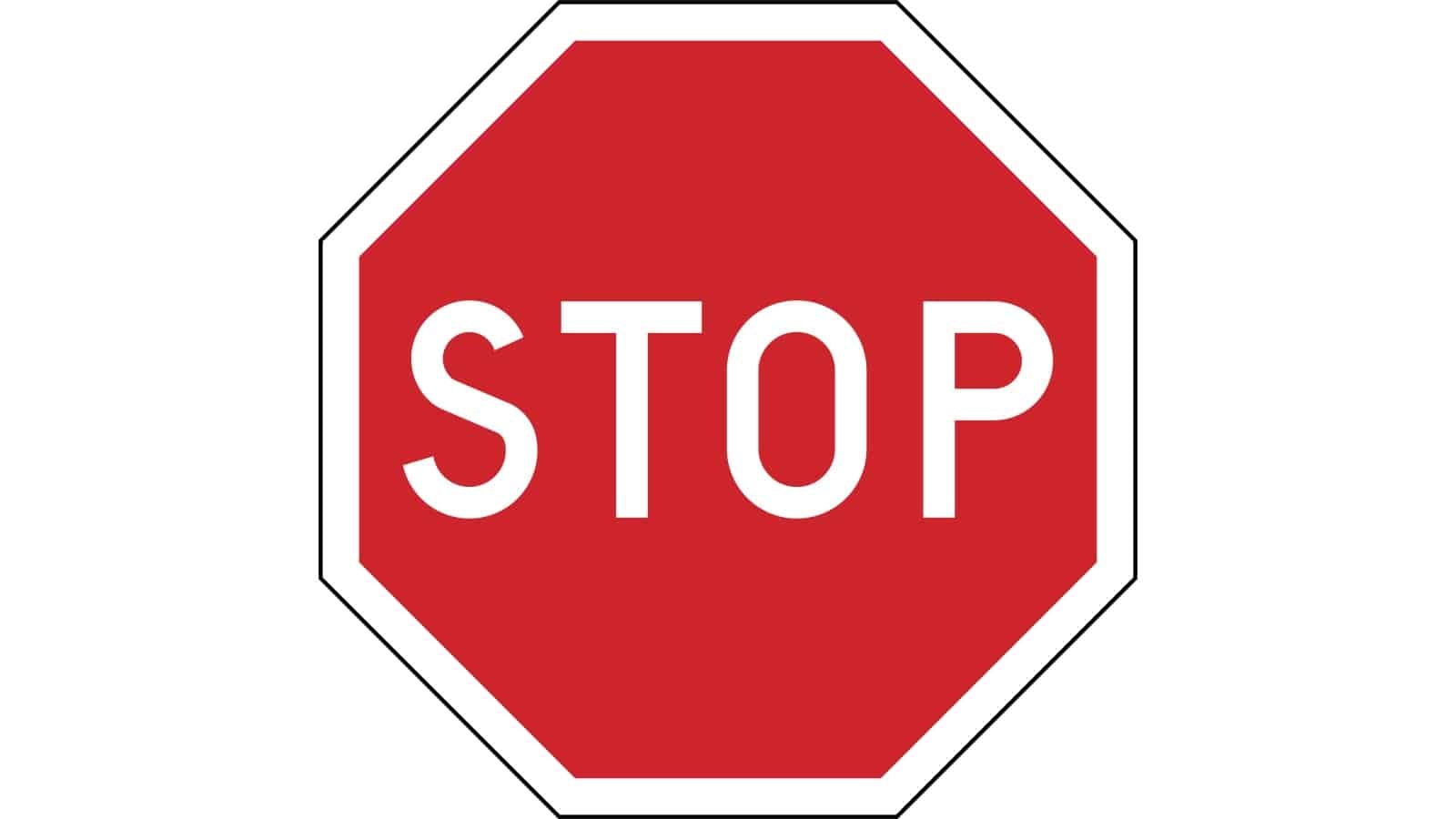 Stopplikt. Detta är en stoppskylt och stopplikt råder. Stopplikt liknar väjningsplikt, men innebär att du måste stanna även om det inte finns någon korsande trafik. Att bryta mot stopplikten anses vara mycket allvarligt och leder till indraget körkort. Att rulla istället för att stanna kan också leda till indraget körkort.