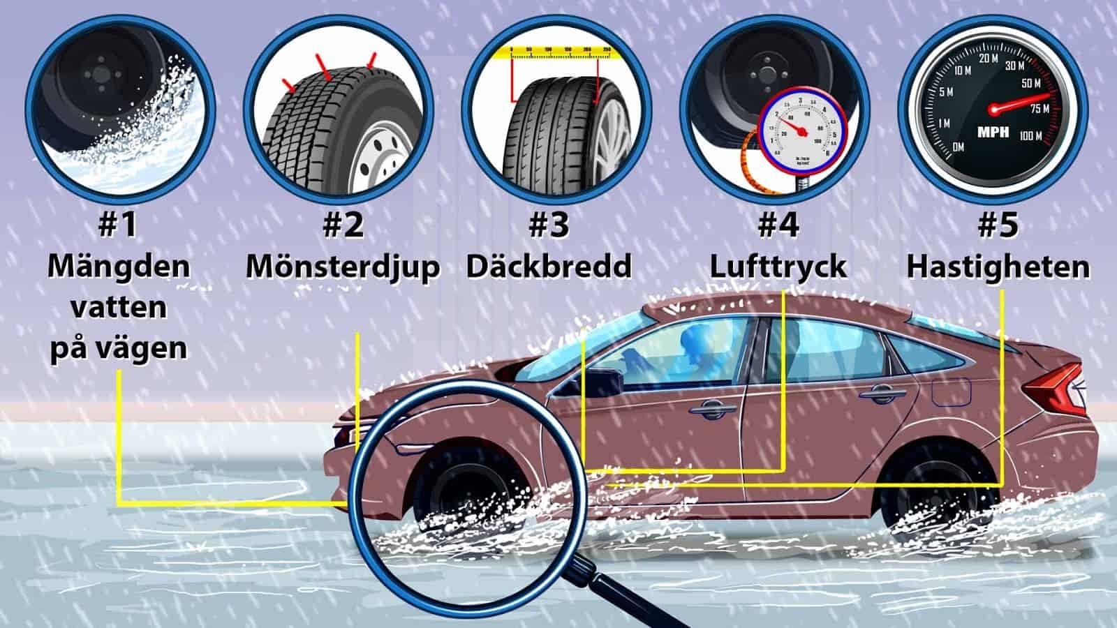 Om du råkar ut för vattenplaning bör du följa dessa 5 säkerhetstips: