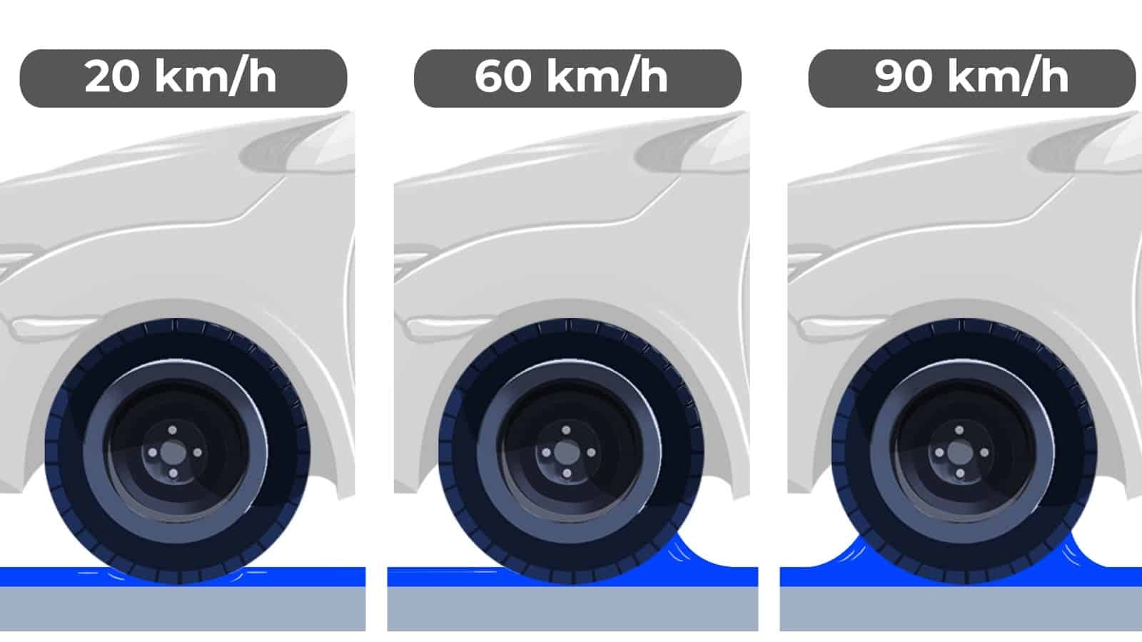 Tänk såhär – dina däck kan bara få bort en viss mängd vatten givet en viss hastighet, och om du överskrider den hastigheten kommer däcken inte att kunna driva bort vattnet tillräckligt snabbt.
