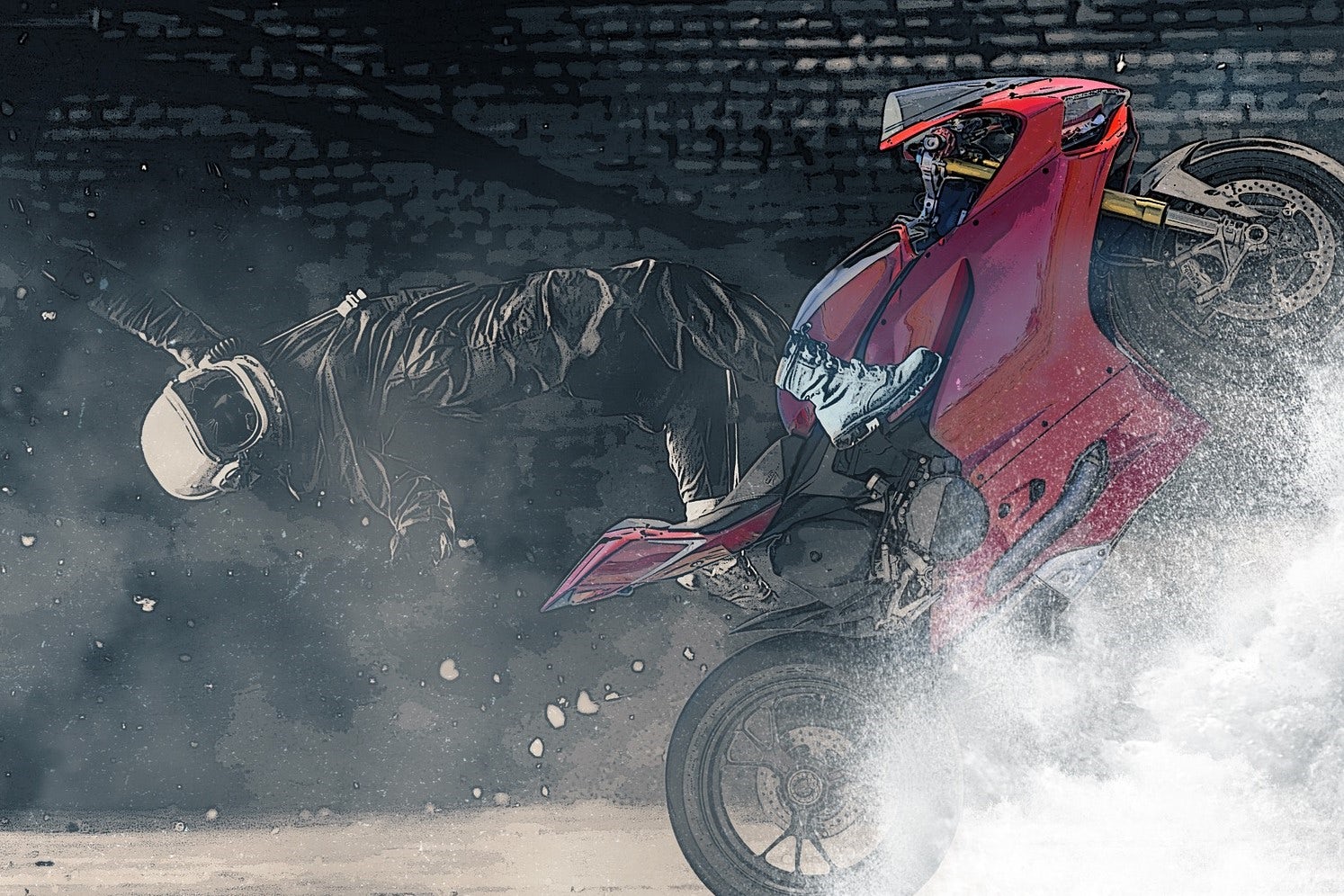 Motorcycle crashes often lead to spinal injuries and multiple fractures. The helmet should therefore only be removed if truly necessary - i.e. if the victim is unconscious and the airway is blocked or likely to be compromised, or if CPR is needed.