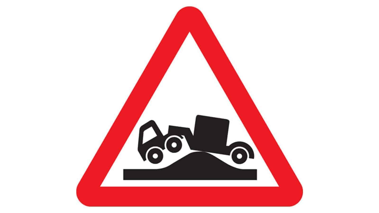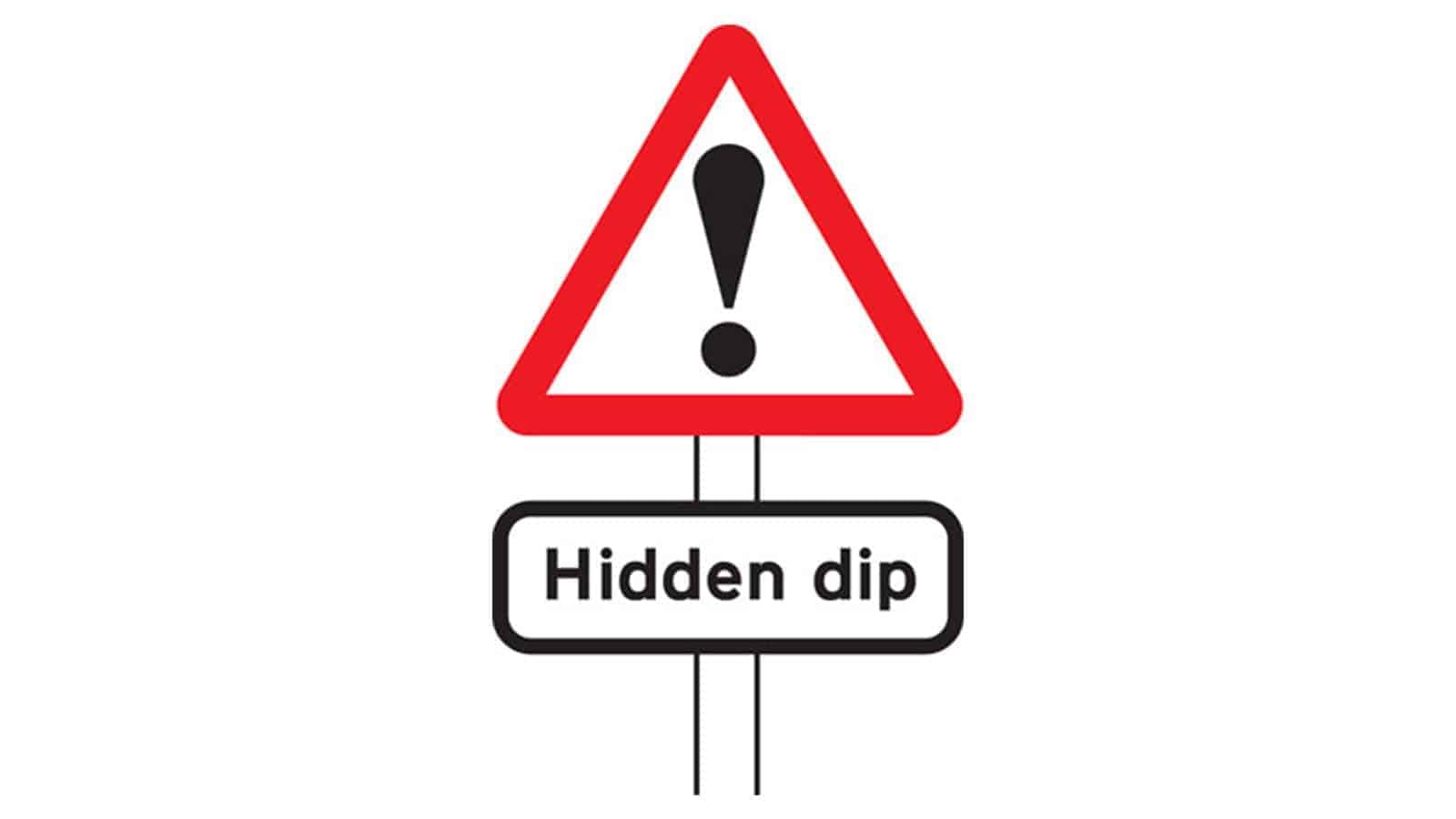 Plate indicates that the danger is a hidden dip on the road ahead.