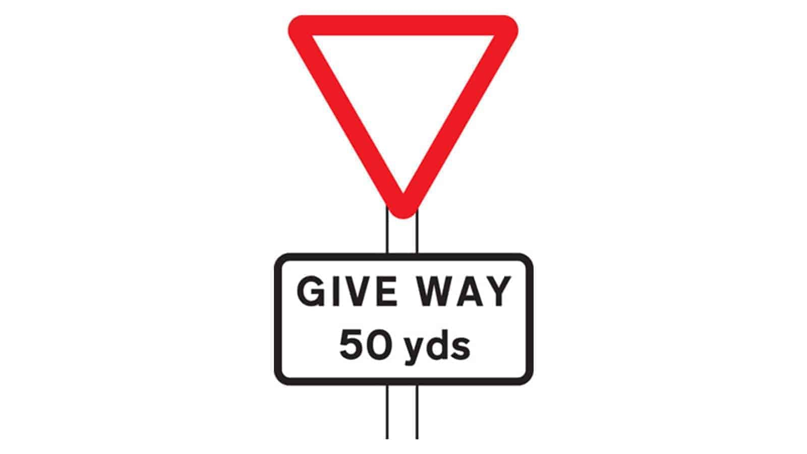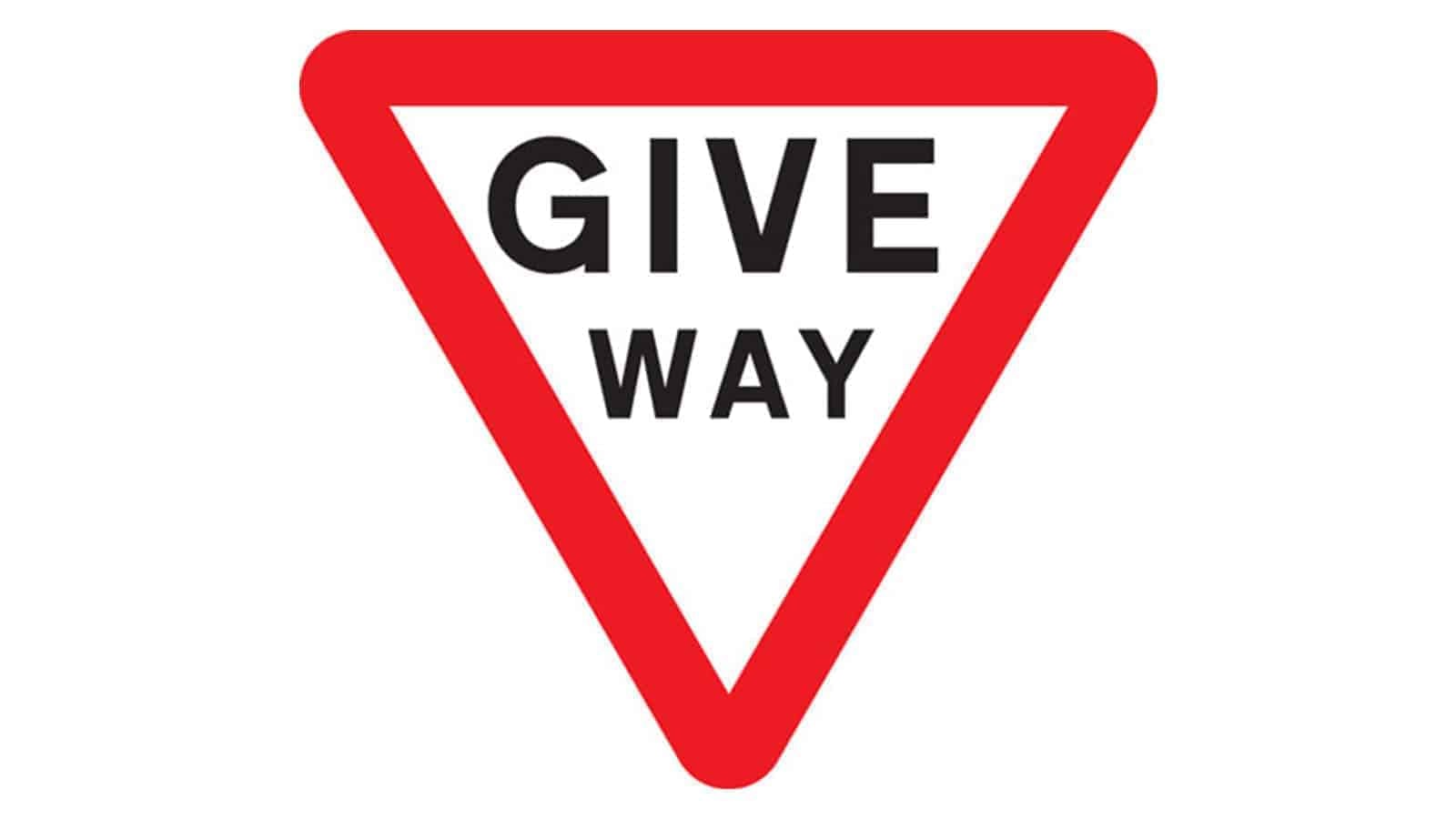 The Give Way Sign indicates you must slow down on approach and give way to all other traffic nearing the junction. You don’t have to stop if you are alone on the road.