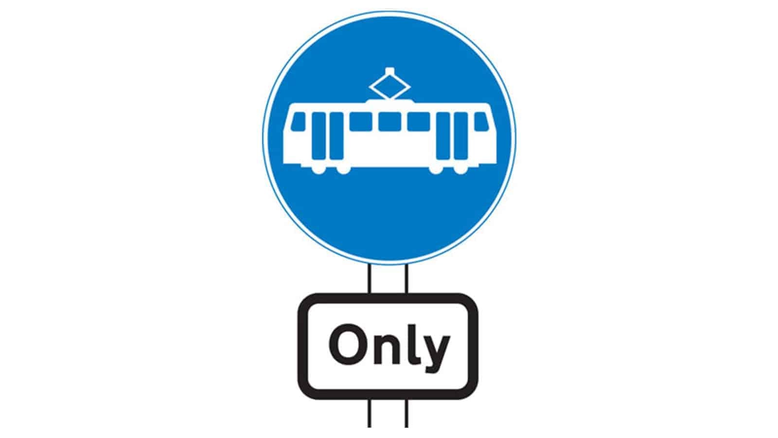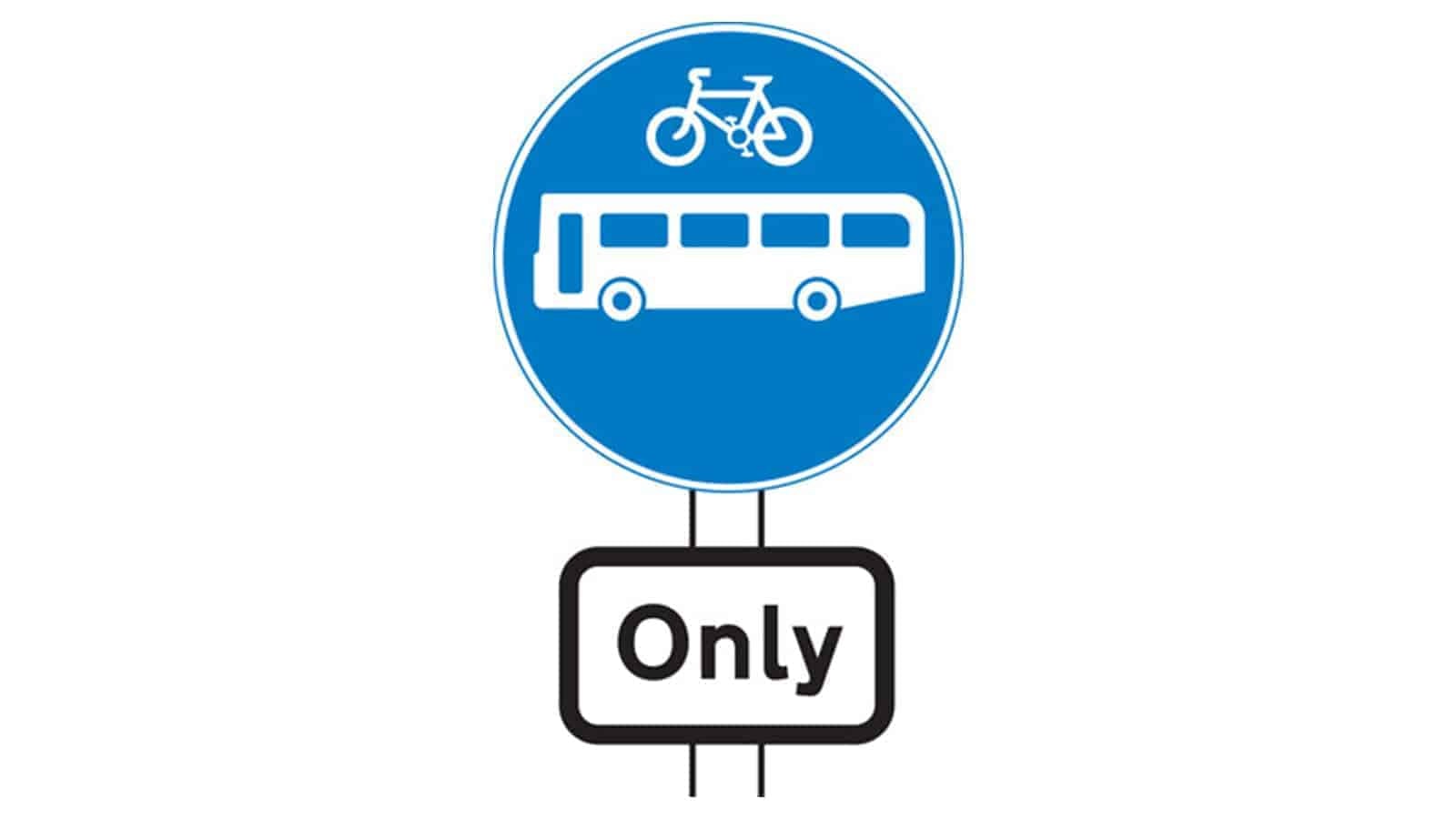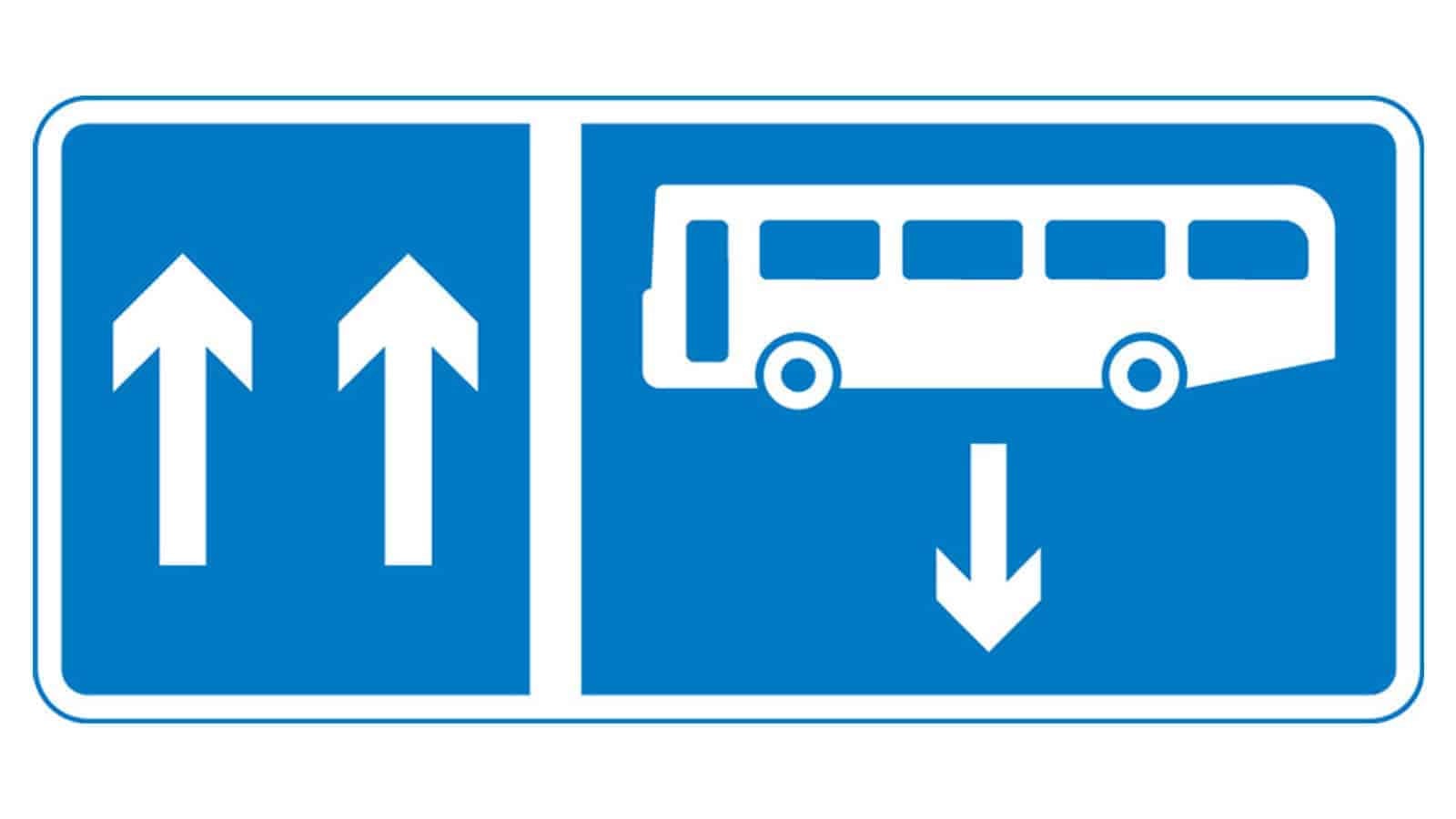 This sign indicates a contraflow bus lane sign. Do not drive in the bus lane during the times specified under this sign.