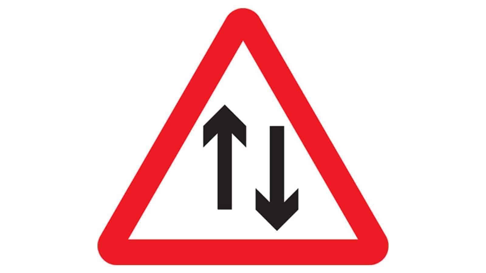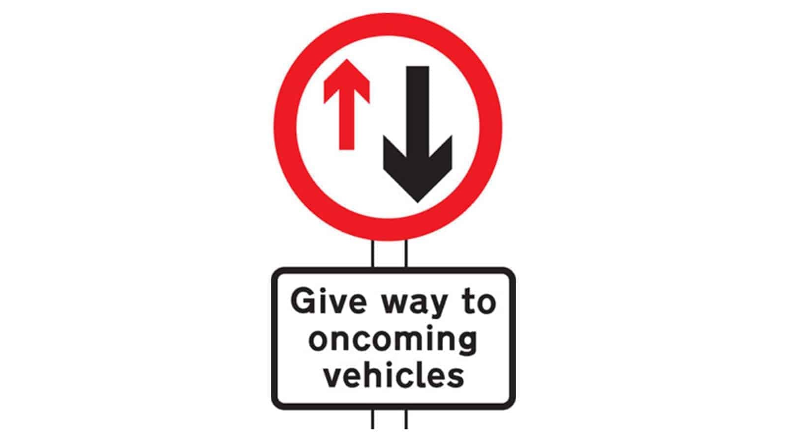 This sign tells drivers that they need to give way to oncoming vehicles.