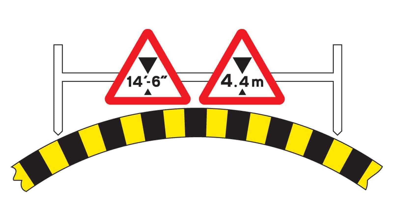 Plate indicates the maximum safe height for vehicles. If over this height, choose an alternative route.