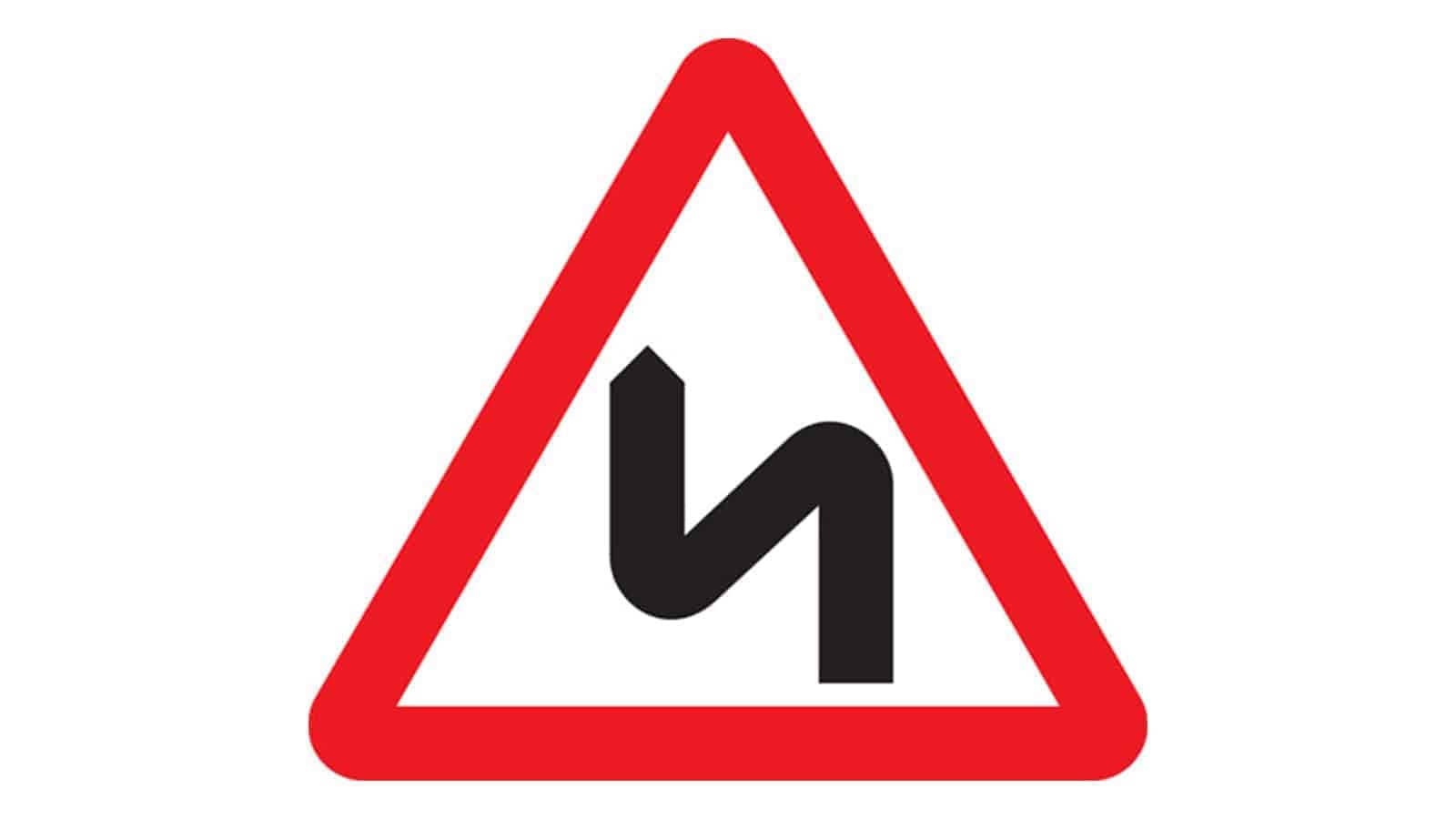 Junction on bend ahead. The bolder line has priority through the intersection.