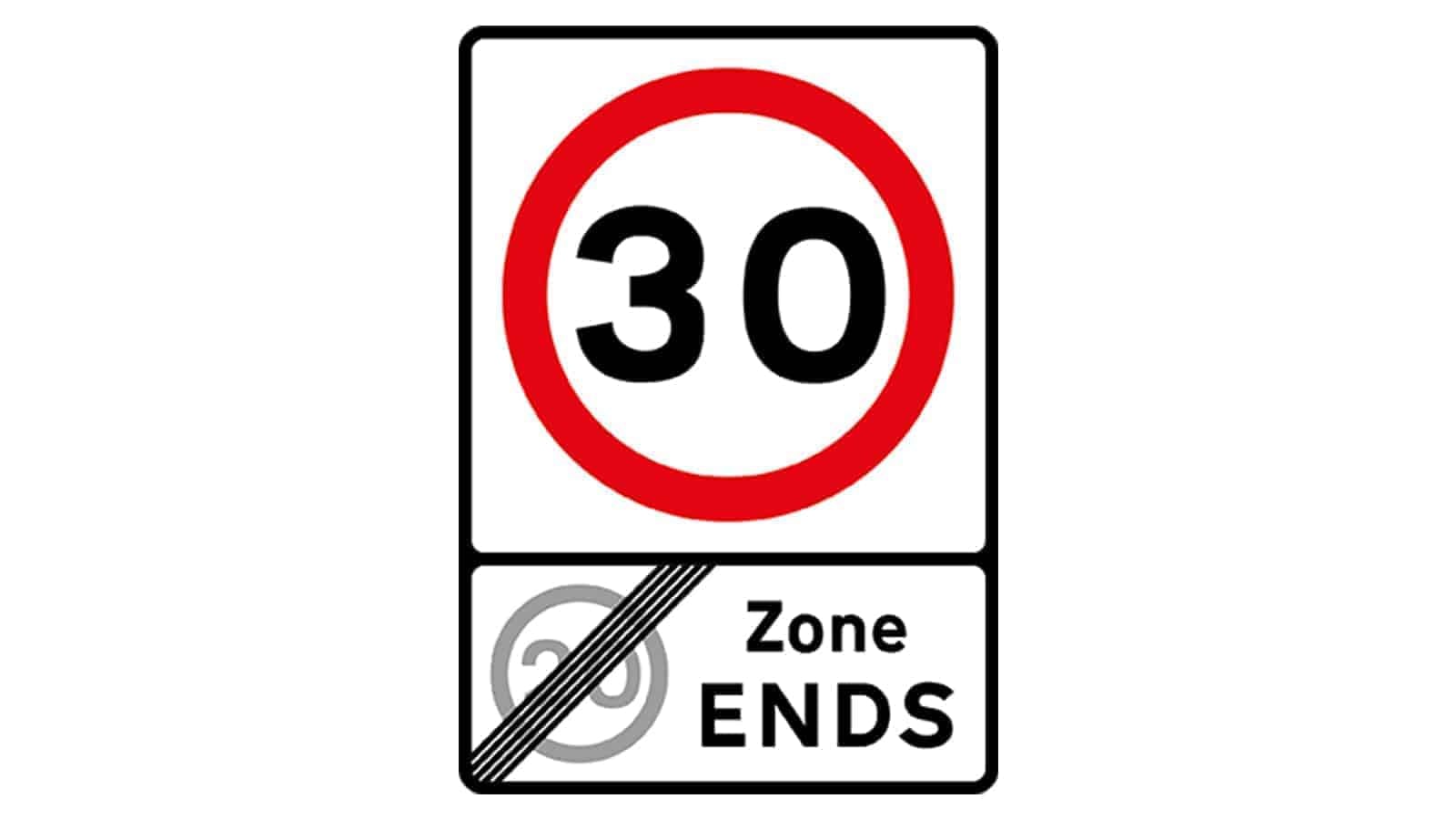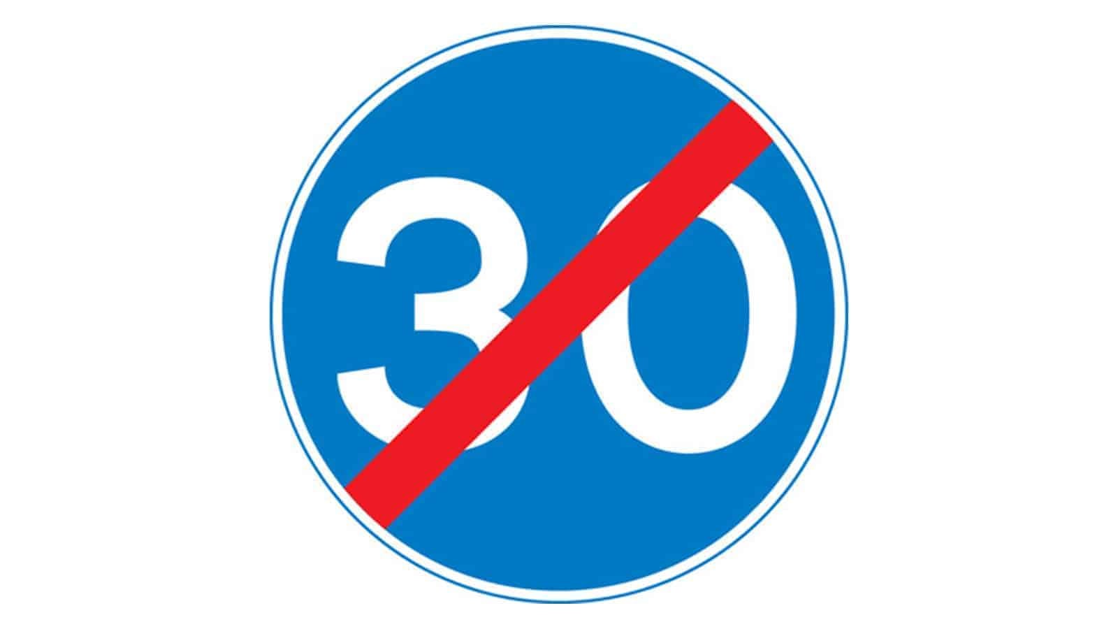 This sign tells drivers that the 20 mph speed limit zone ends and the speed limit is now 30 mph.