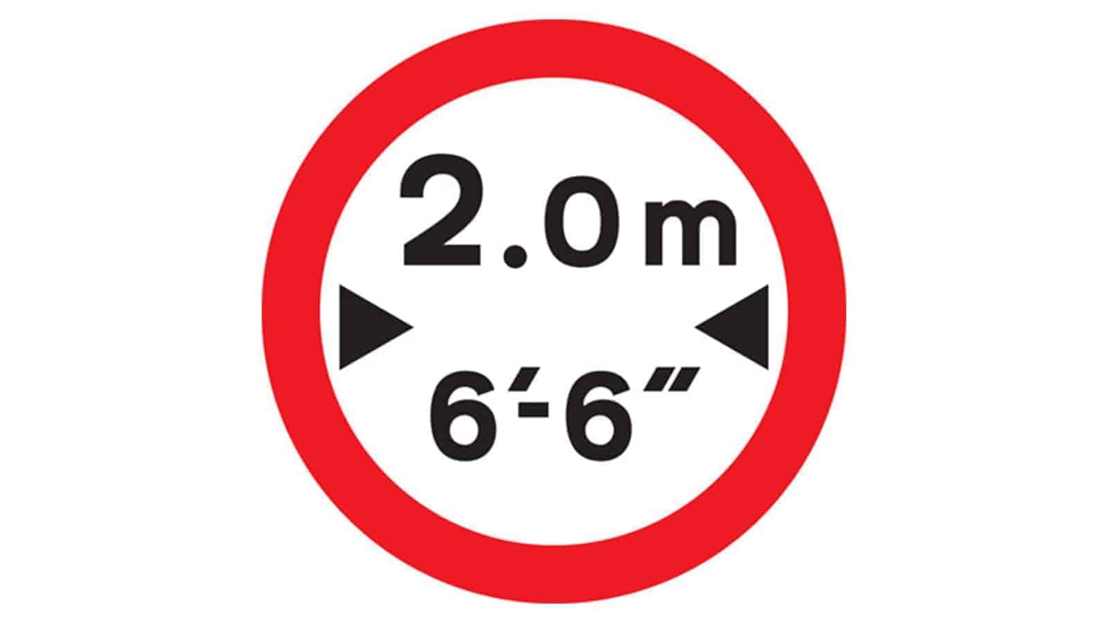 This sign tells drivers they must not drive a vehicle with a width over 2.0m past this point.