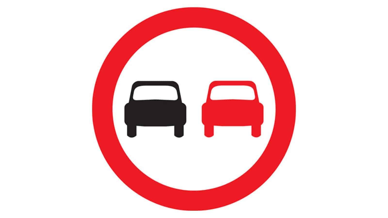 The No Overtaking Sign tells drivers they must not overtake another vehicle while this sign is active.