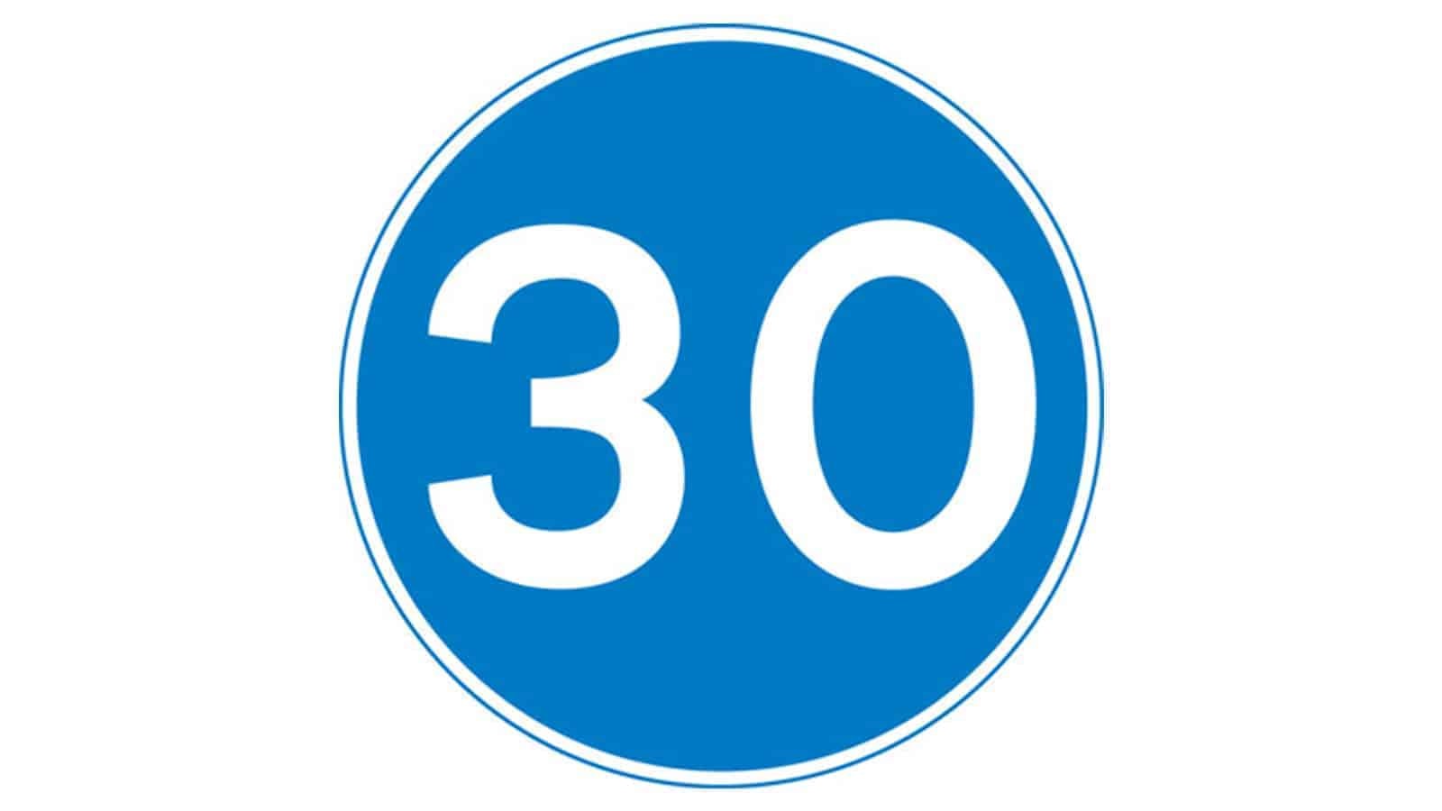 Minimum Speed Limit Sign. This sign indicates a minimum speed limit of 30 mph. Do not drive slower than indicated!