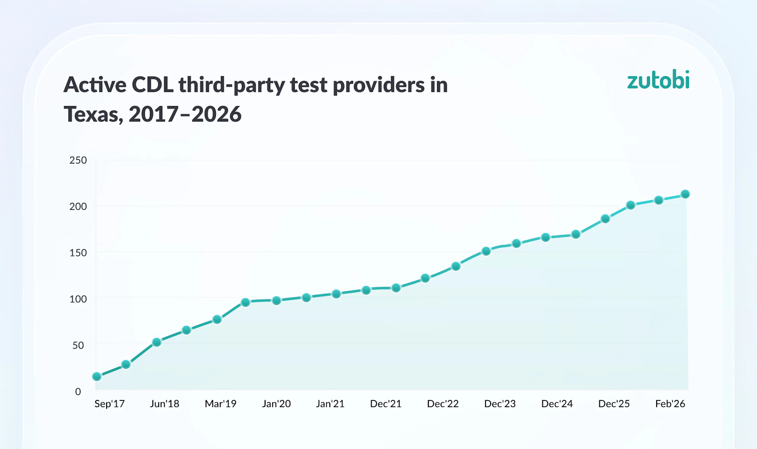 In September 2017, Texas had 15 approved third-party CDL skills test providers. By February 2026, there were 209. That’s a 14-fold increase in under nine years.