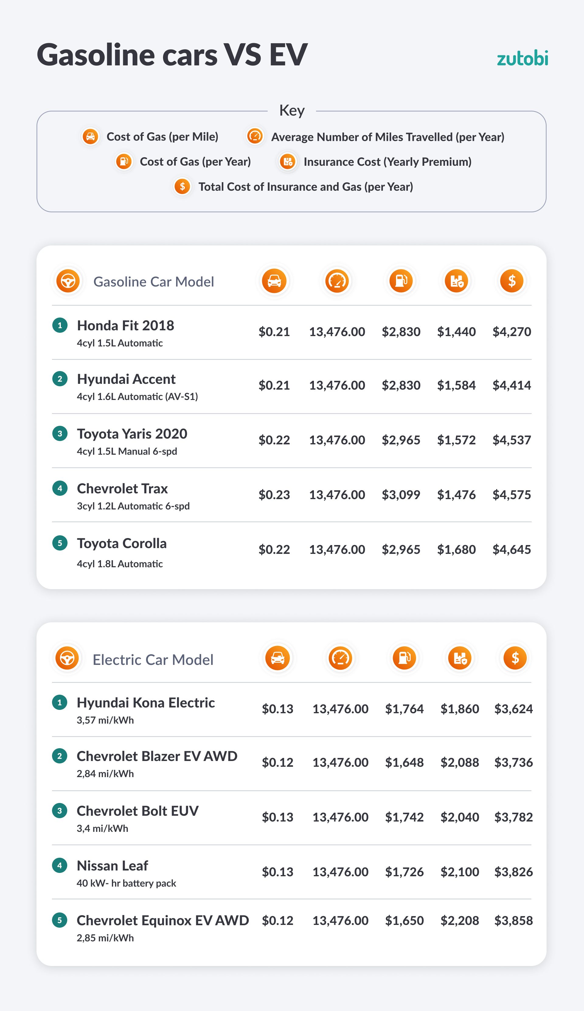 | Total Cost of Insurance and Gas per Year: $4,537 | Total Cost of Insurance and Electricity per Year: $3,826 |