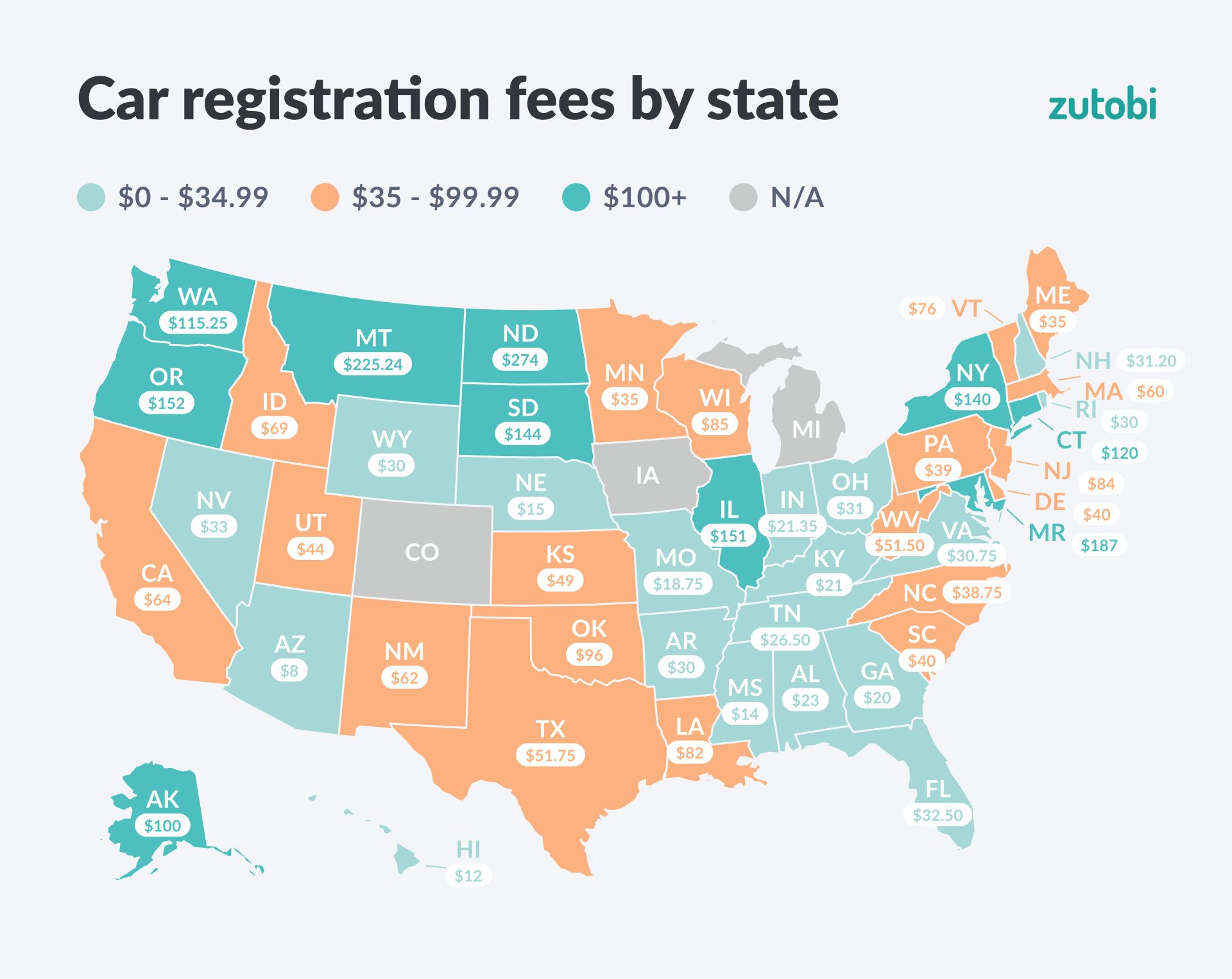 Other high-fee states include Illinois ($151 annually, plus a $251 EV fee) and Michigan ($135–$235 EV fee, with standard registration based on MSRP and age).