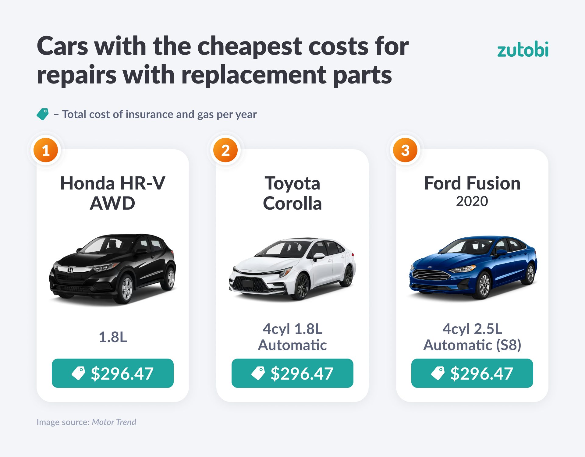 Cars with the Cheapest Costs for Repairs with Replacement Parts