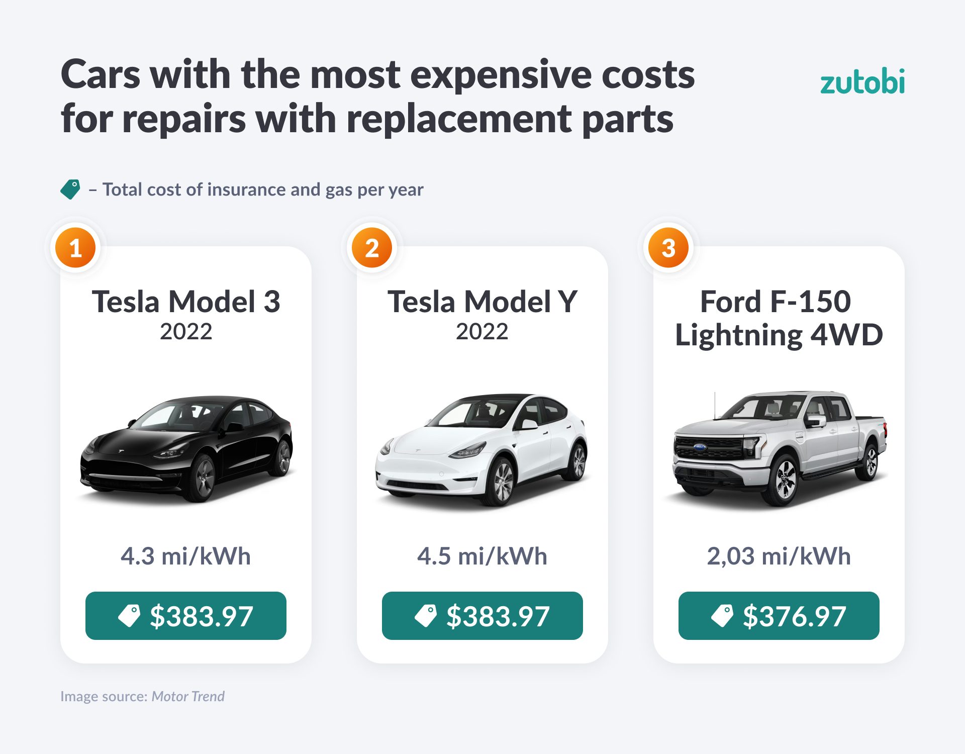 Cars with the Most Expensive Costs for Repairs with Replacement Parts