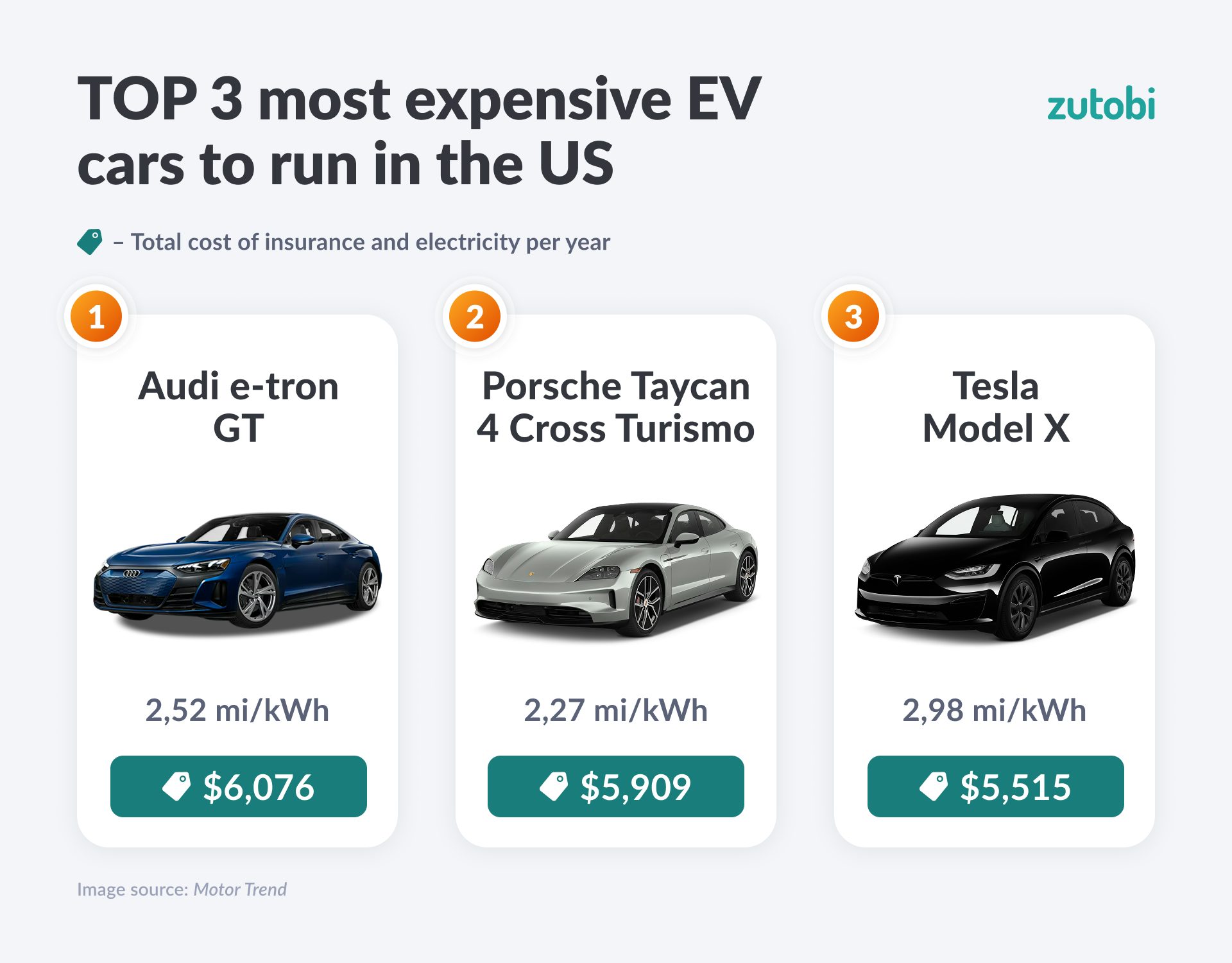 | 10 | Audi | Q4 e-tron Sportback Quattro (2,81 mi/kWh) | $0.12 | $1,642 | $2,520 | $4,162 |