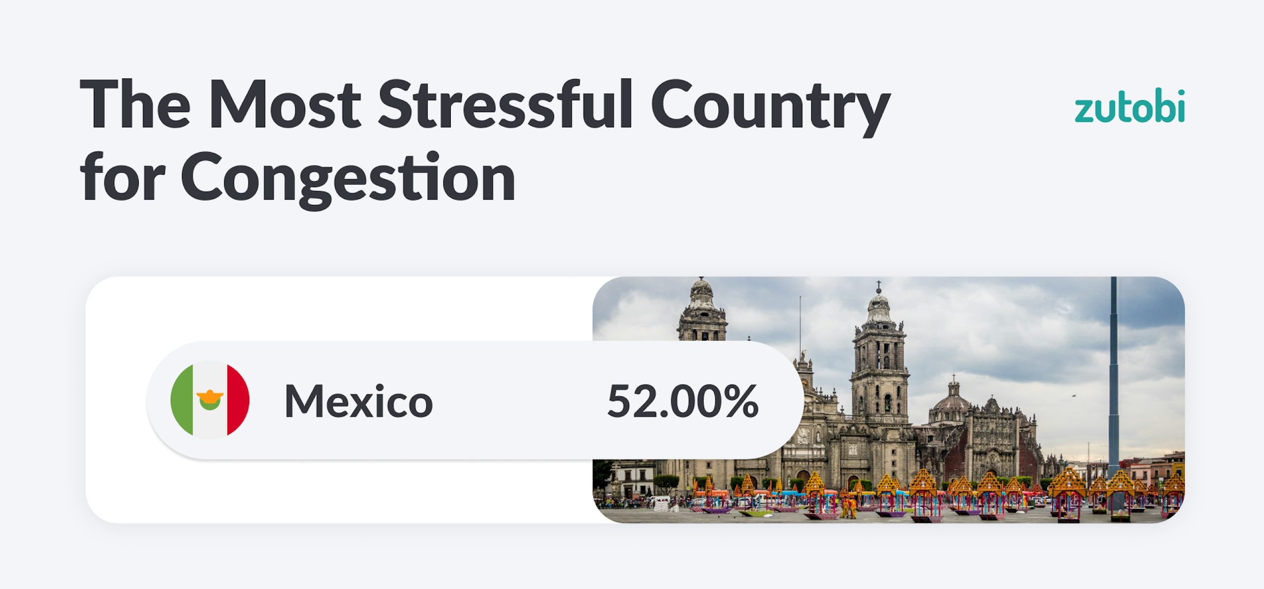 When learning to drive, you want your lessons and test to be as smooth as possible, and constant stopping and starting in traffic can make concentrating on the task at hand a lot harder. Of the countries we looked at, Mexico had the highest level of traffic congestion, with a score of 52%, which means that the average journey in the country’s major cities takes 52% longer than it would do in free-flow conditions.