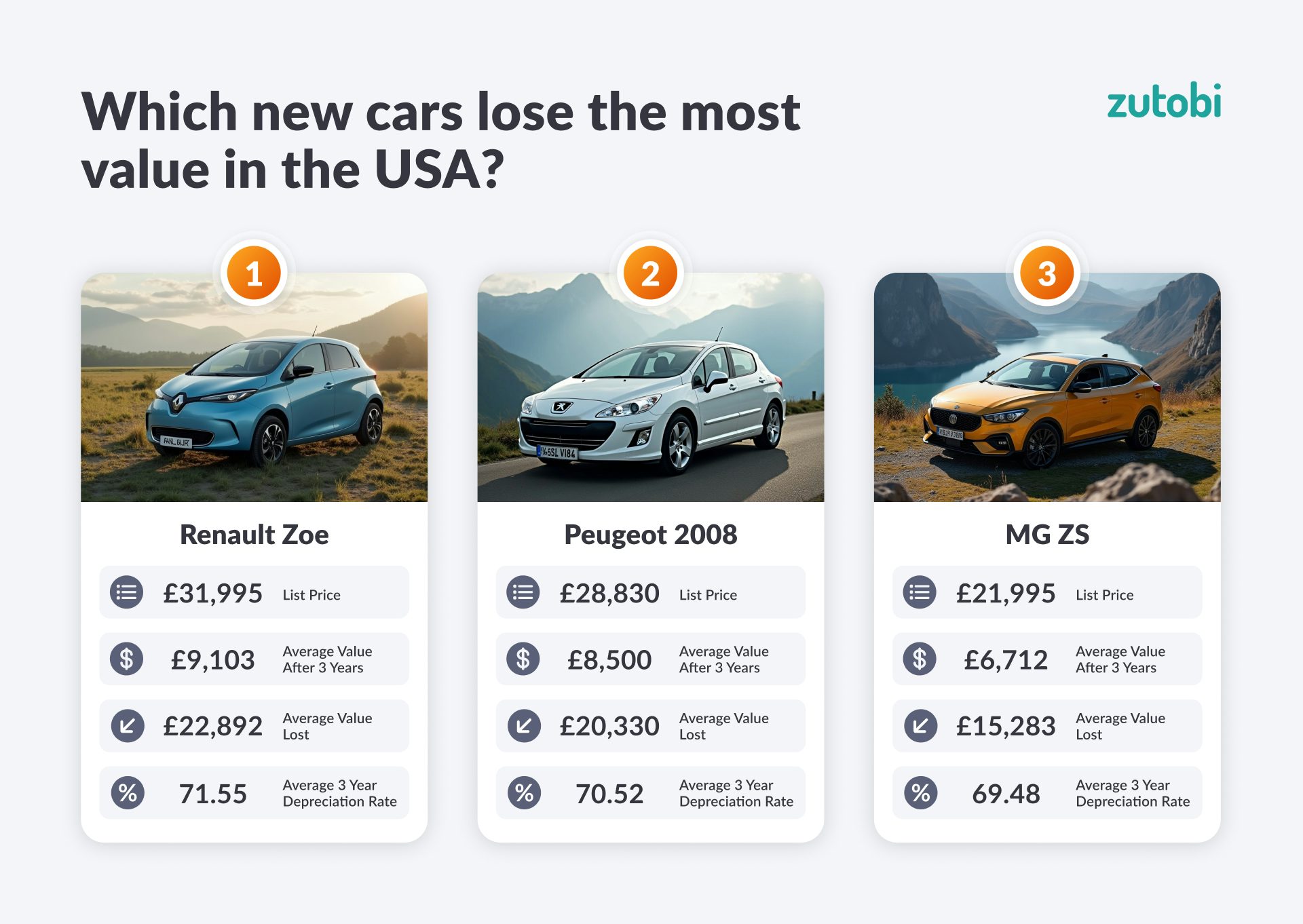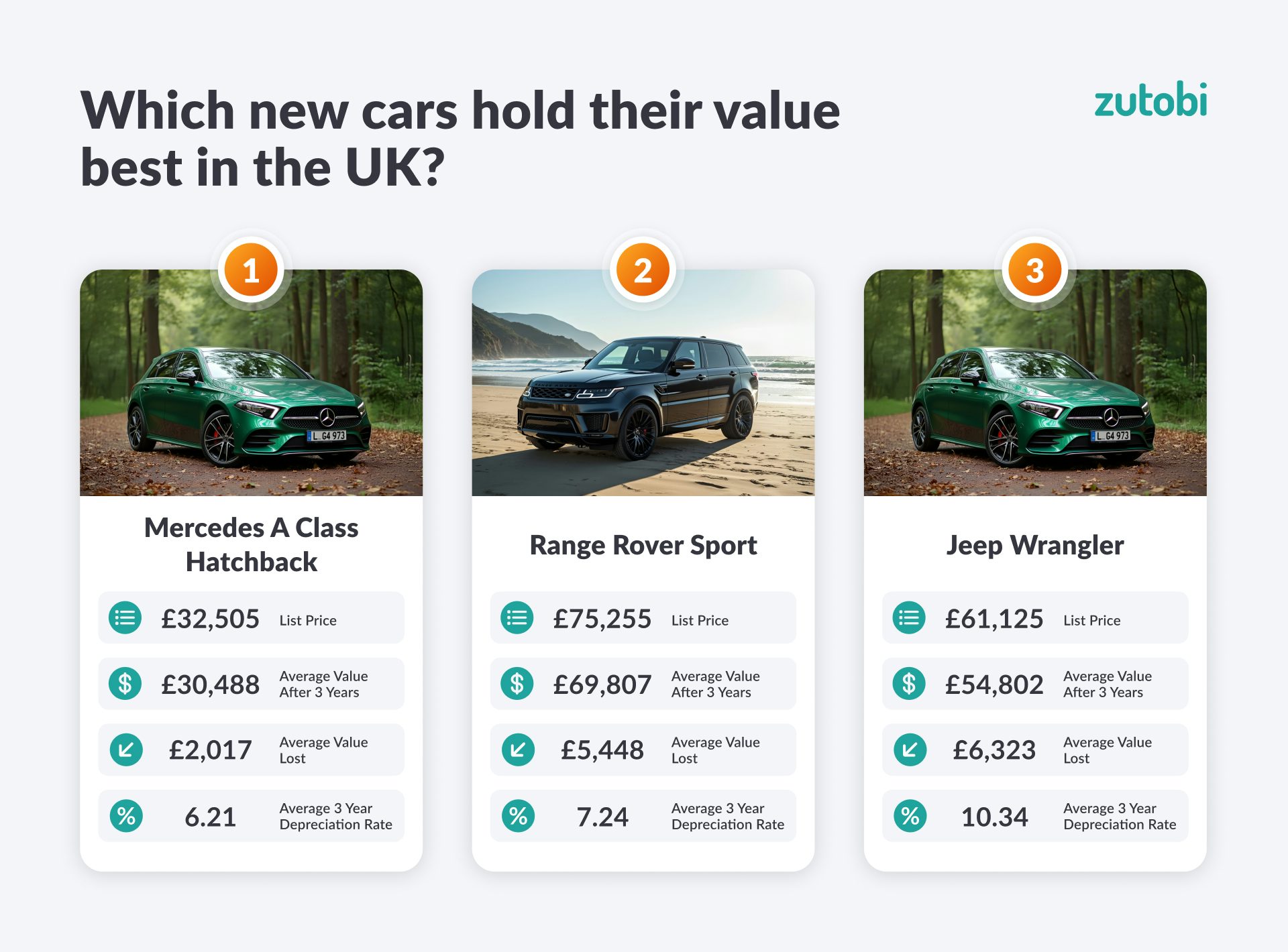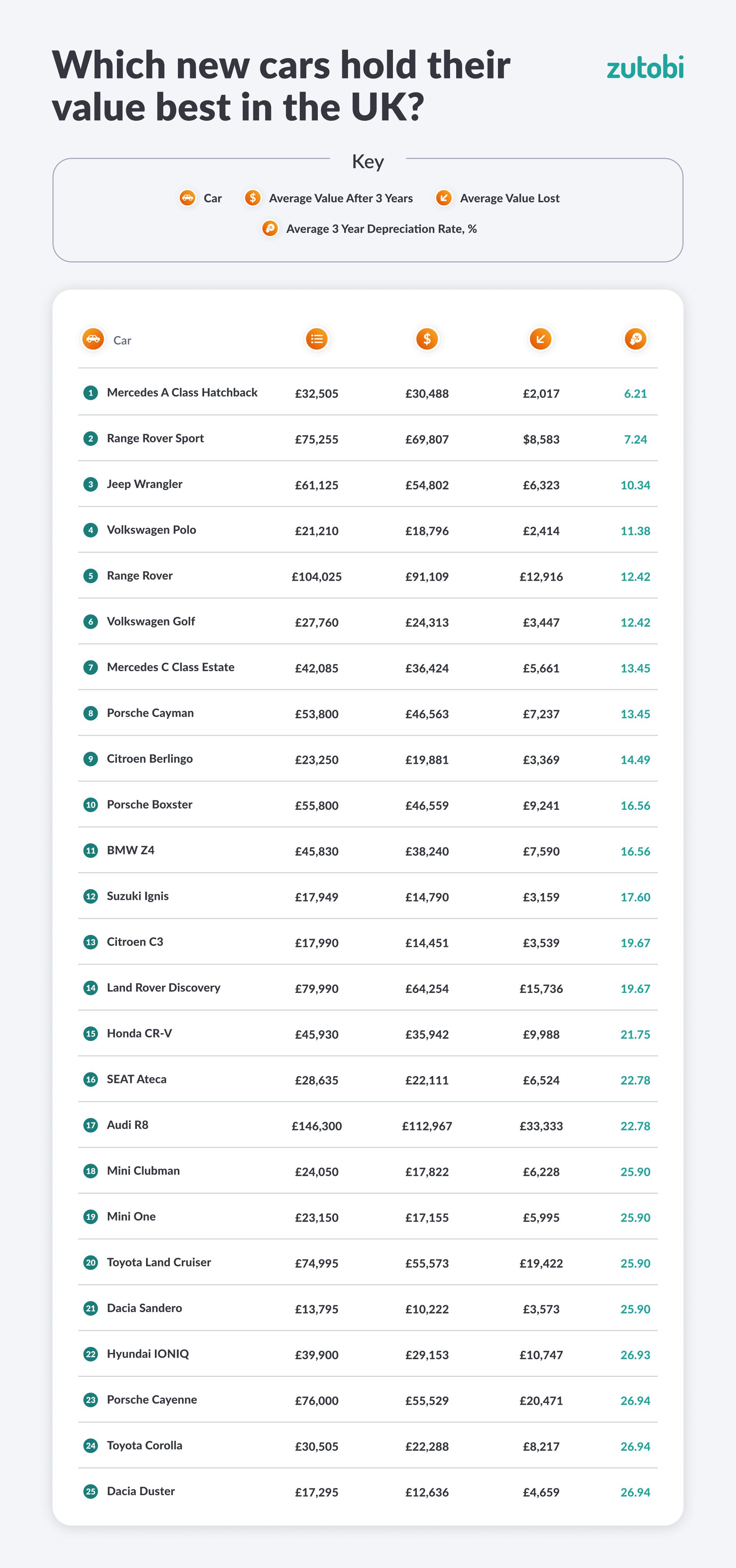 - A UK car depreciation calculator was then used to determine the average estimated value in three years’ time.