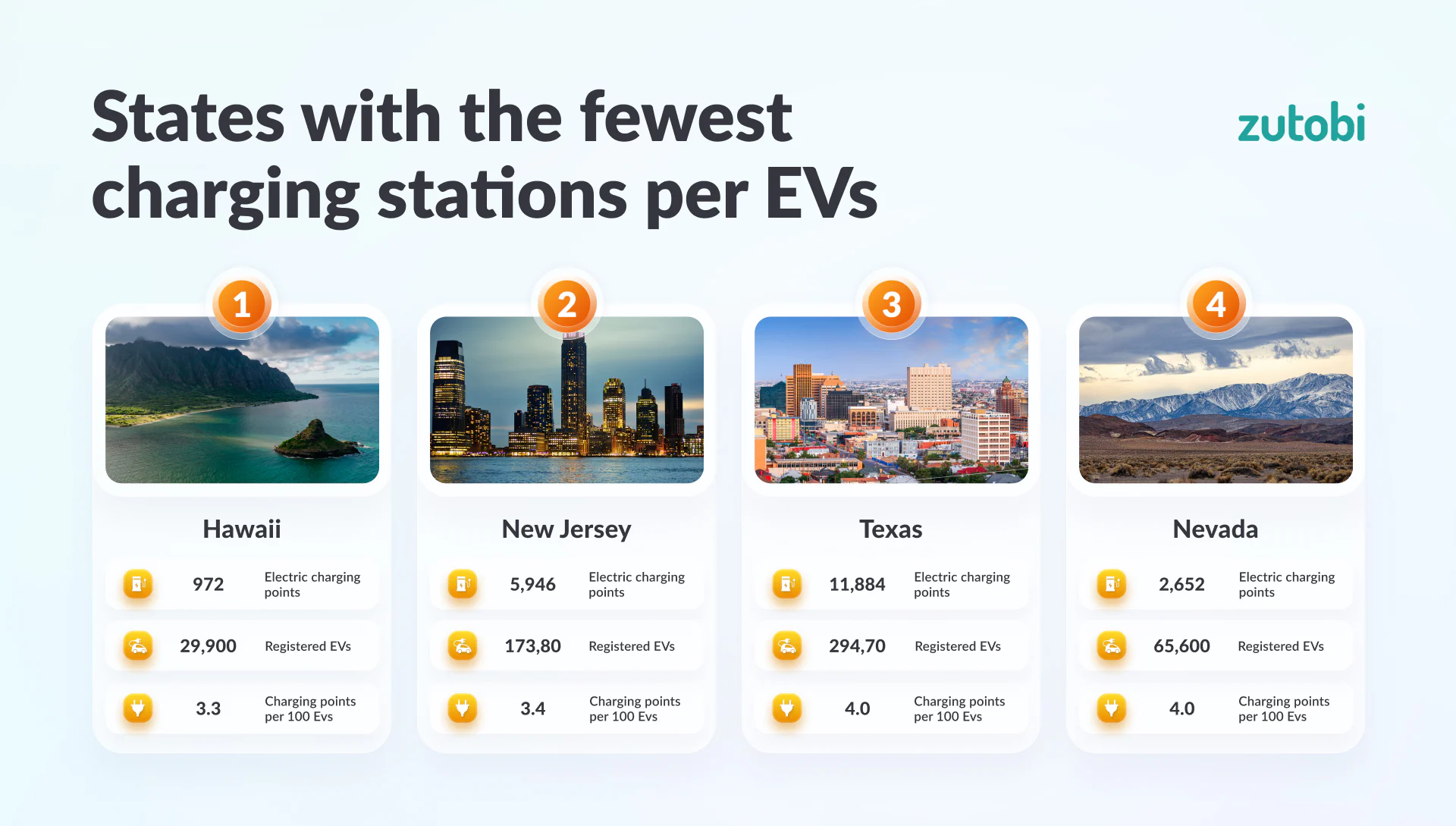 | № | States | Electric charging points | Registered EVs | Charging points per 100 EVs |