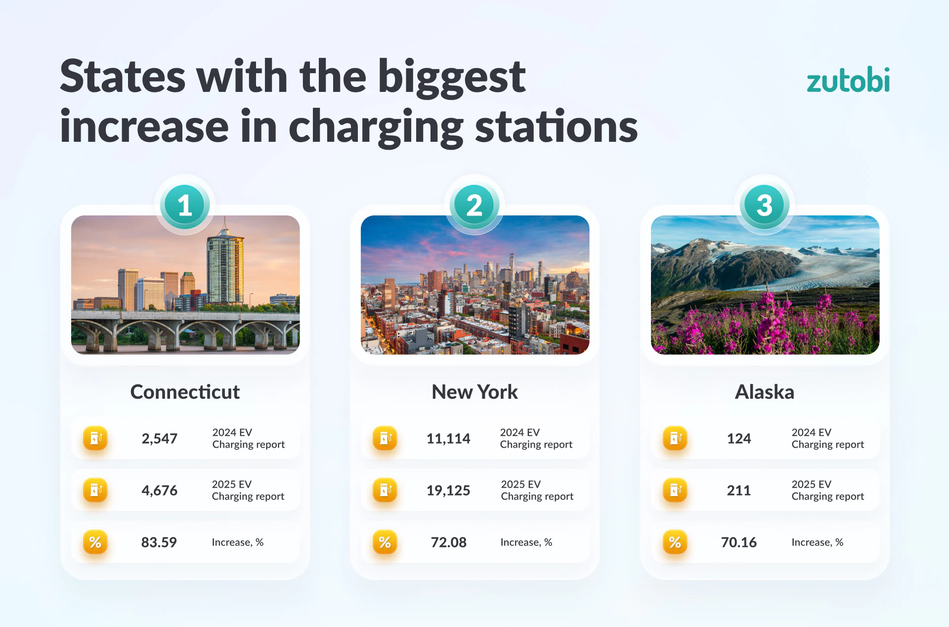 | № | State | Total electric charging points (2024 Report) | Total electric charging points (2025 Report) | Increase, % |