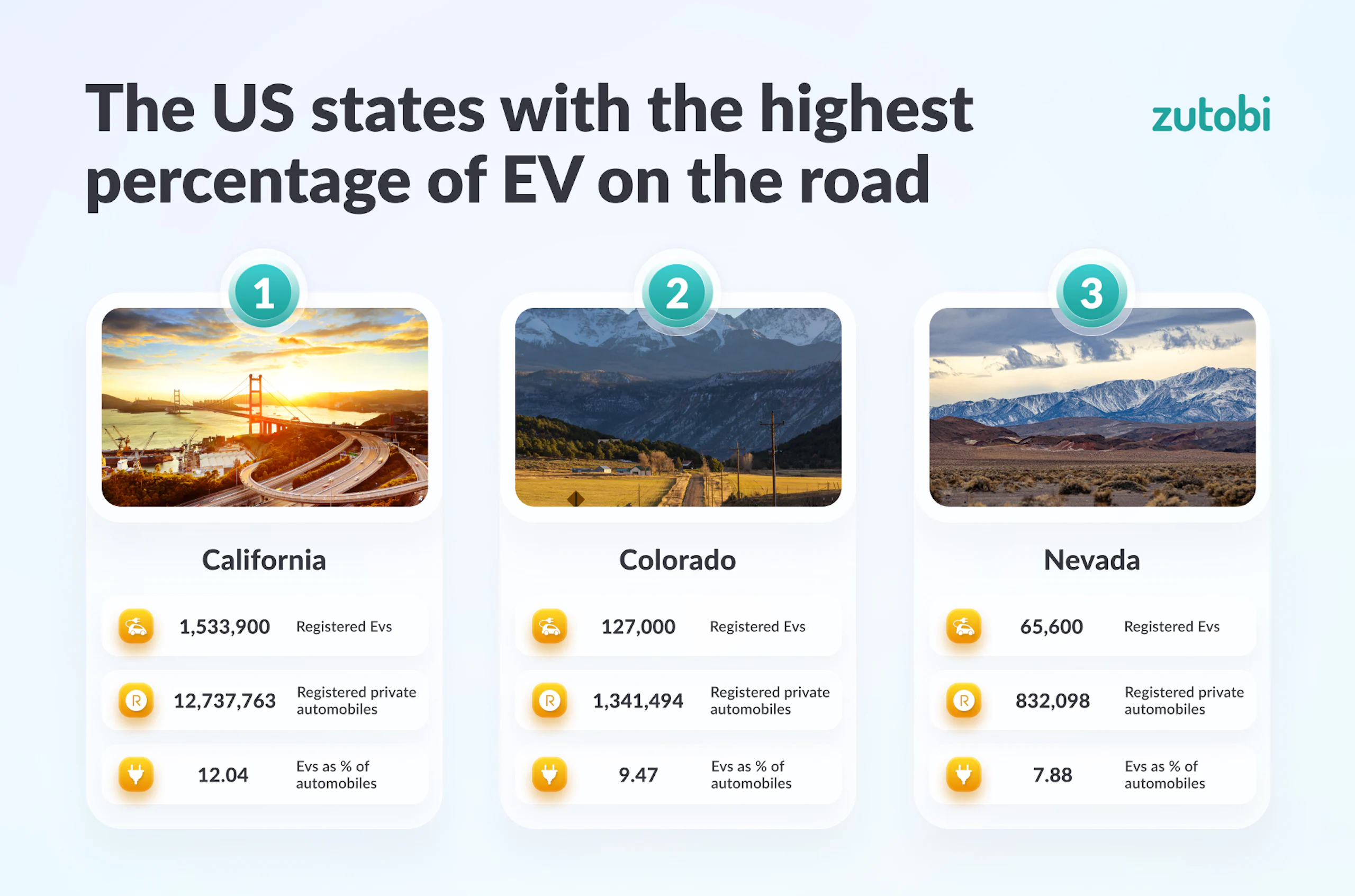The US states with the highest percentage of electric vehicles on the road