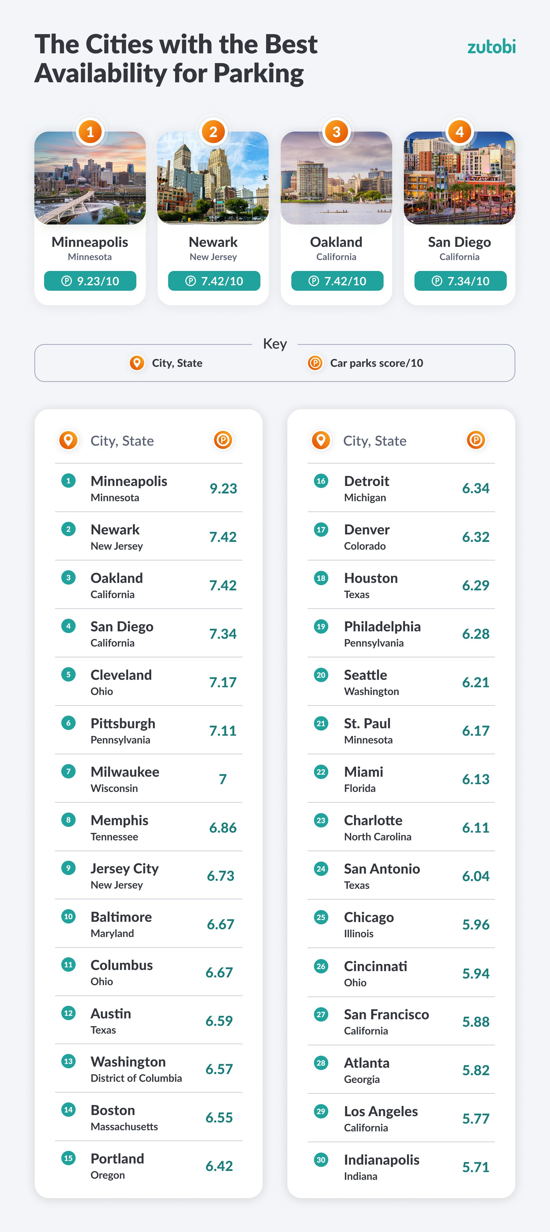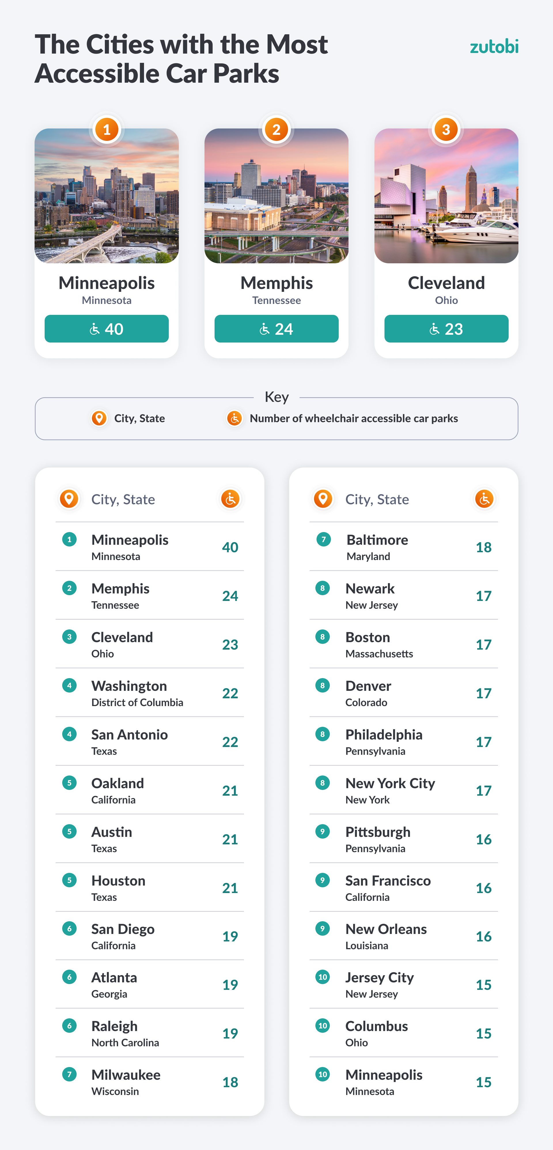 Rounding out the top three is Cleveland, Ohio, a city known for its sports culture and iconic Rock & Roll Hall of Fame. With 23 accessible car parks, Cleveland demonstrates a clear focus on inclusivity and ease of movement for all drivers. The city’s urban layout and thoughtful infrastructure make it easier for individuals with disabilities to enjoy all that Cleveland has to offer — from lakefront parks to vibrant downtown events.
