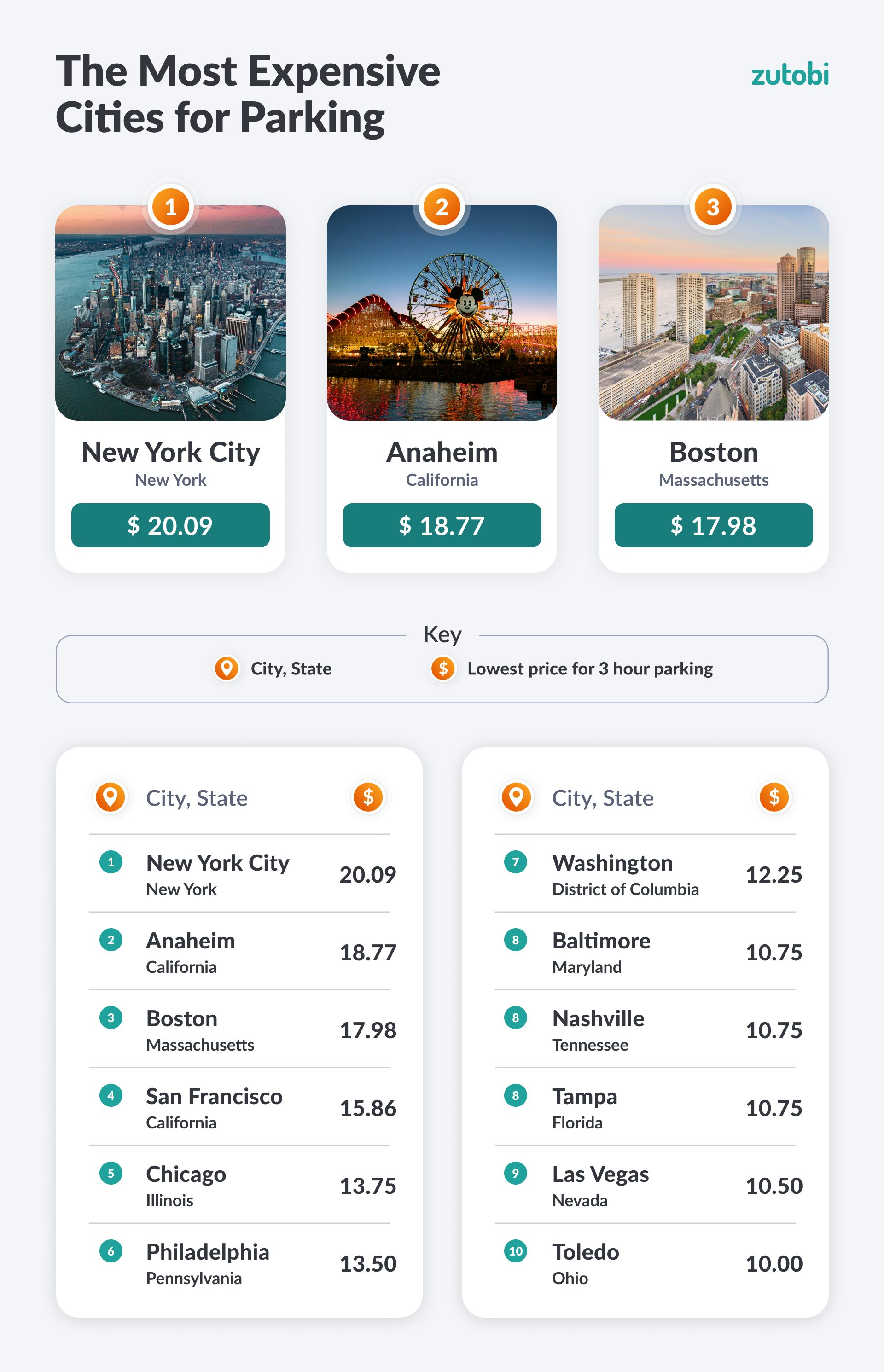 New York City ranks as the most expensive city for parking in the U.S., with a minimum rate of $20.09 for just 3 hours. In the city that never sleeps — and where space is always at a premium — parking comes at a steep cost. Whether you’re navigating through Midtown Manhattan or attending events in Brooklyn, drivers can expect to pay top dollar for the convenience of a guaranteed spot.